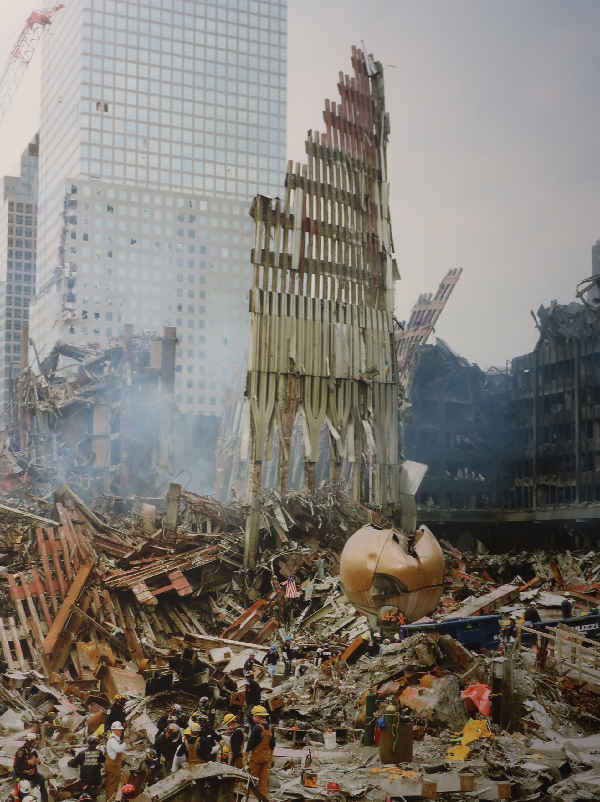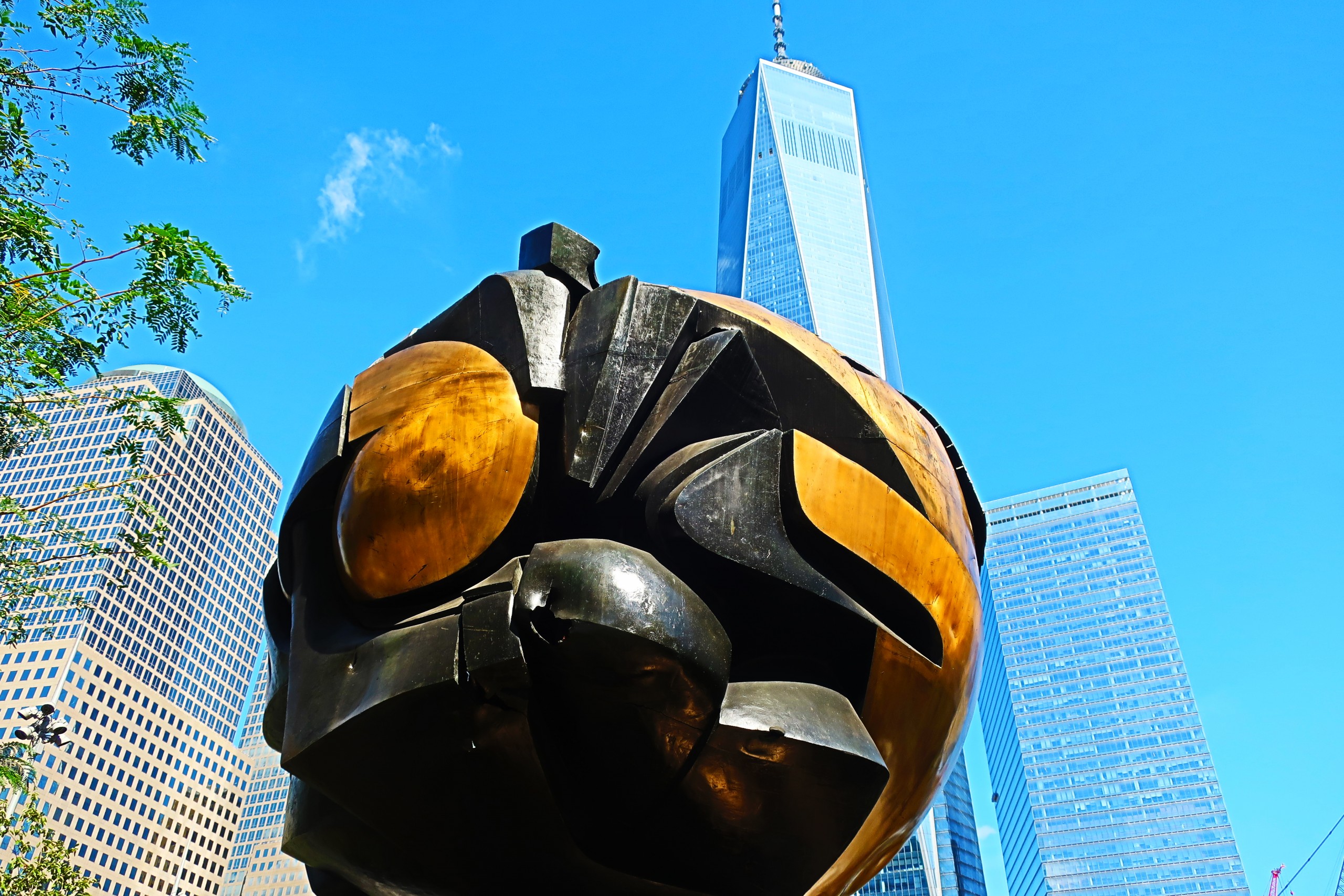 Not far from the Fountains, is small Liberty Park.  It is here where the “Sphere” is located.  It was between the Towers and suffered some damage.