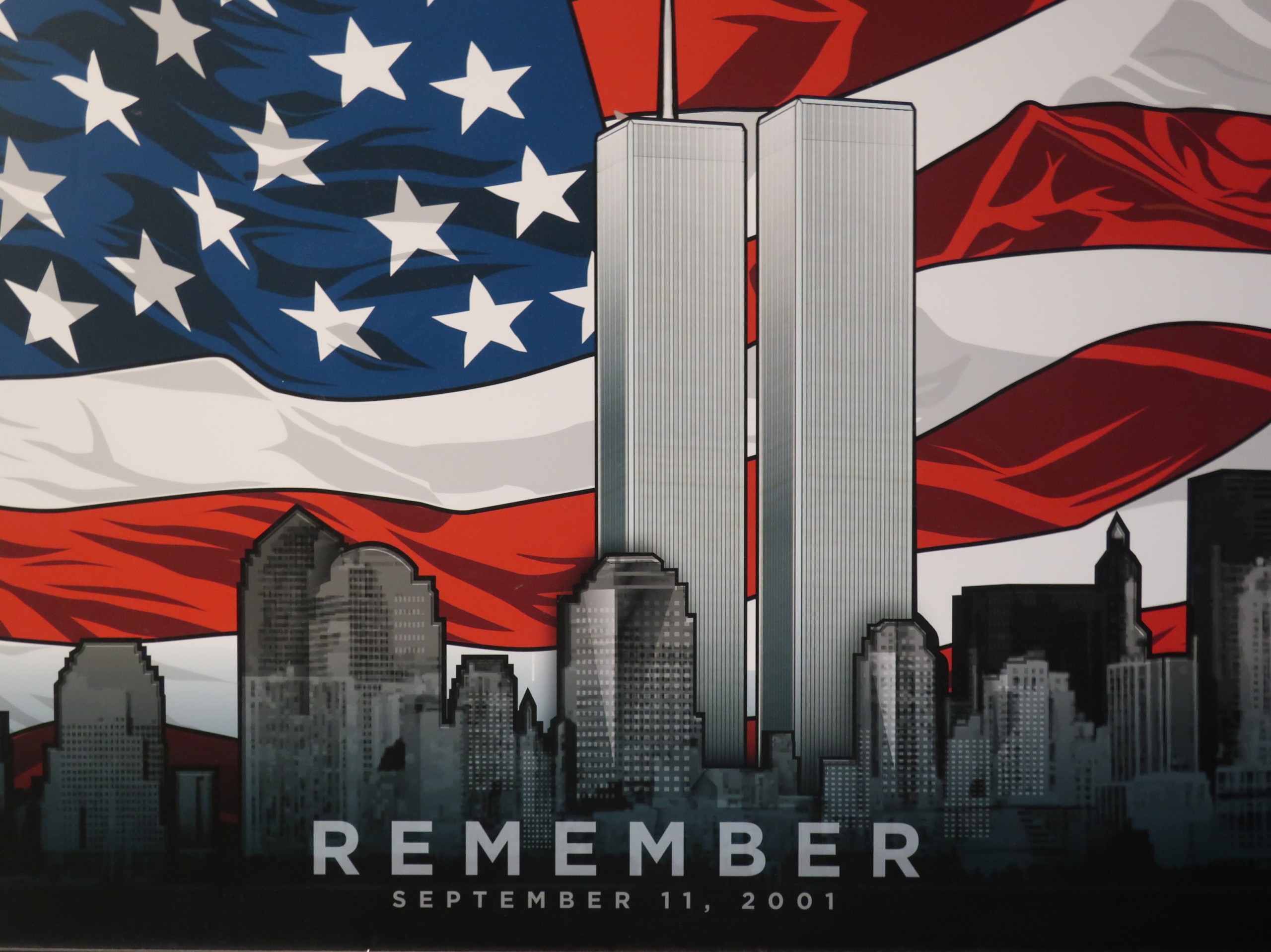In total, though, 2,977 people died from the Tower attacks, the attack on the Pentagon and the United Flight 93 that crashed in Shanksville, Pennsylvania. This figure does not include the hundreds of policemen and fire fighters that have died from being exposed toxic chemicals. Over 90 countries lost someone that day.  There is a row of flags from each country represented in the museum.