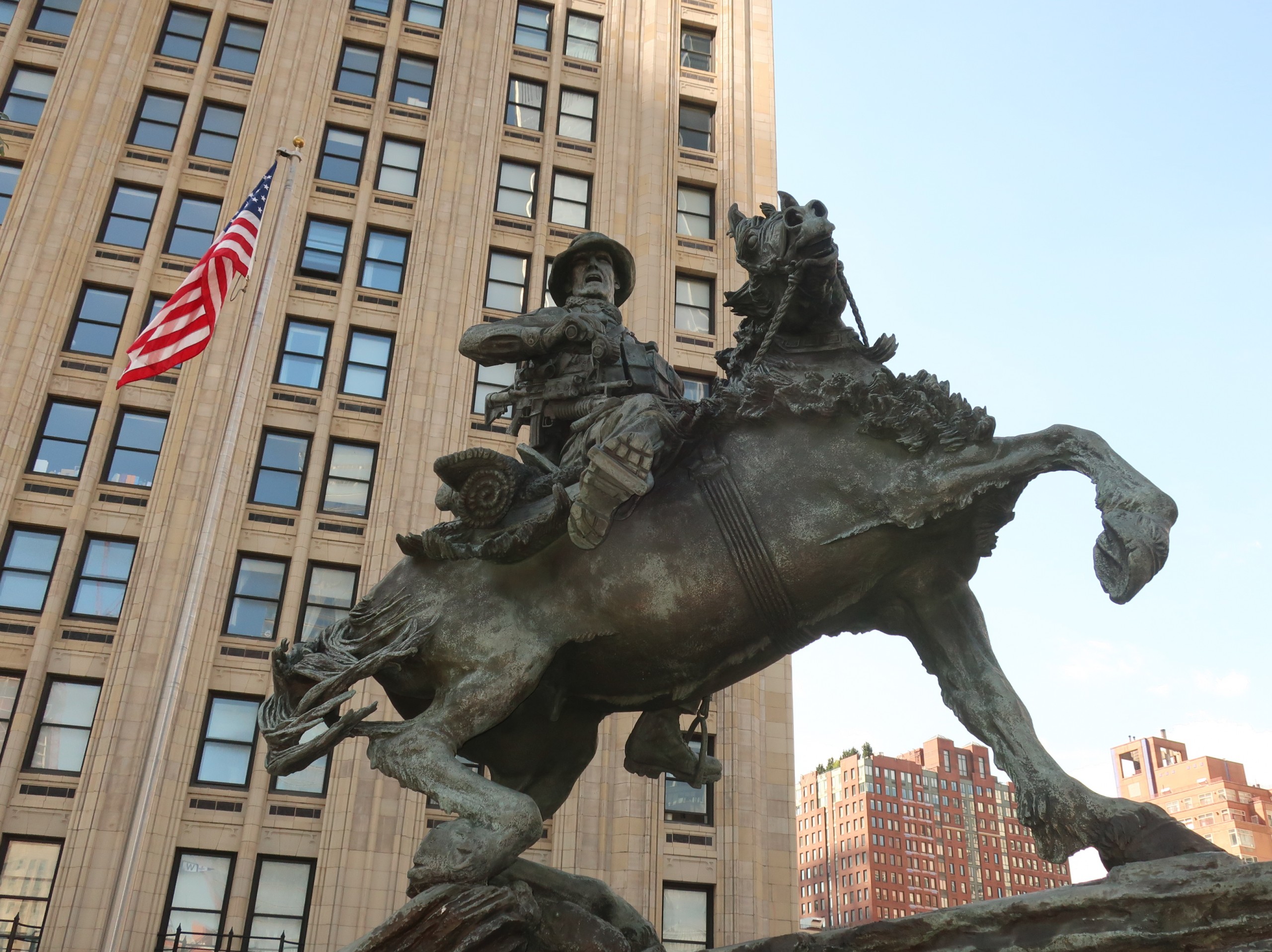 On the other end of Liberty Park, is the only monument dedicated to Special Forces, the America’s Response Monument. As some of you may remember, a team of men and horses (due to the rough terrain) was sent in to capture a enemy position in 2001. The event was later made into a movie, “12 Strong.”