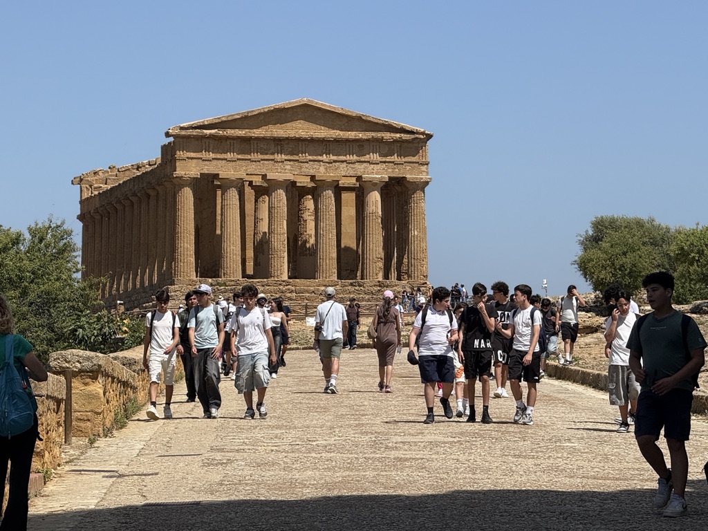 A two-hour train ride through valleys and around large hills we arrived in a decent size city of 60,000 thousand people named Agrigento, famous for having 15 Greek Temples. The city is actually on a ridge looking down on another ridge where the temples are located. Nearly a million people visit Agrigento yearly.