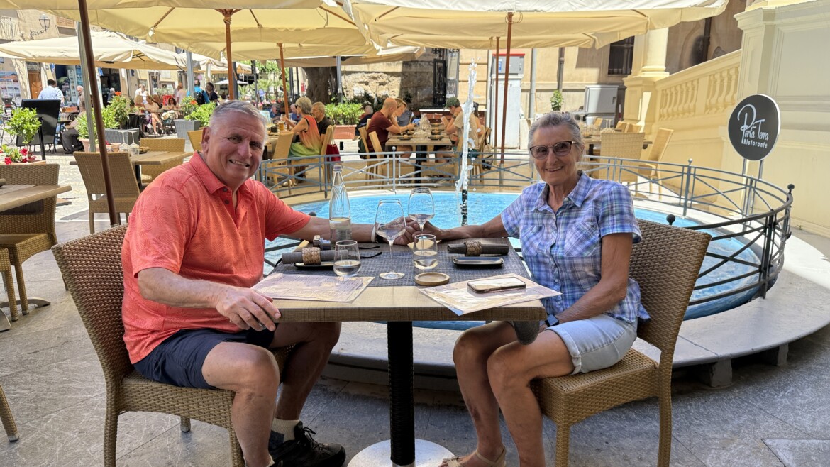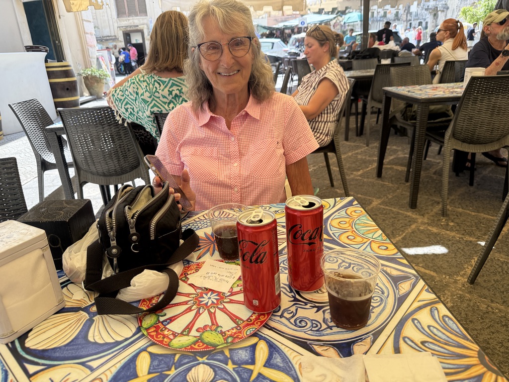 The most unique restaurant was the one we visited where no one spoke any English. There was not even an English menu. Kathie ordered “Zuppa di Cozze.” Kathie thought it would be “soup with tomato sauce.” What came out was “mussel soup.” A pile-high of mussel’s came out in a large bowl smothered in tomato sauce. It was indeed delicious.
