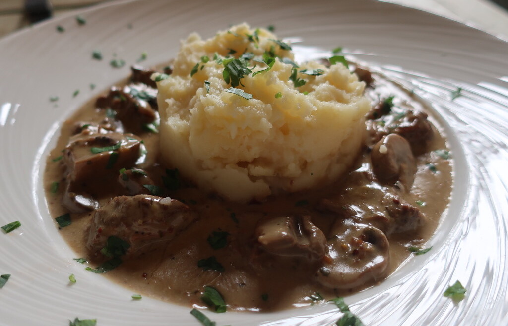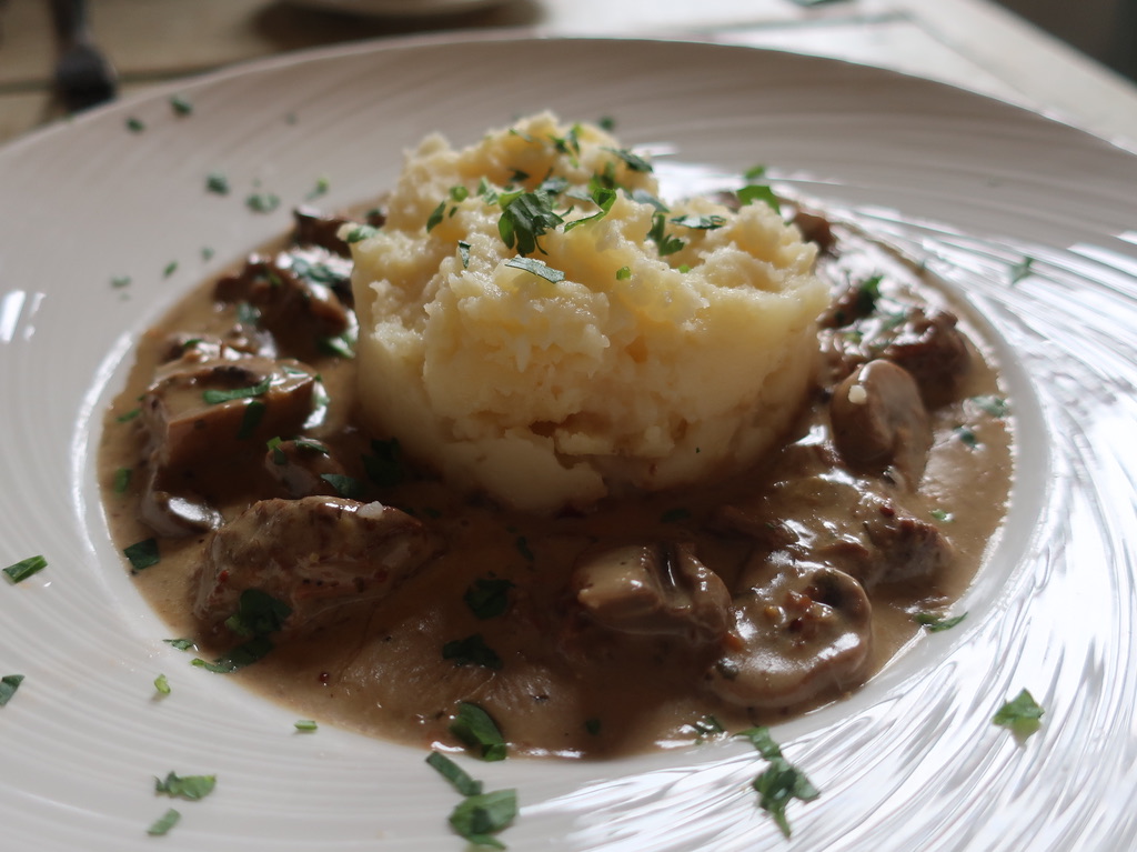 We did have a superb Beef Stroganoff at the Clarence Brasserie & Tea Room. The year before they had sold out of this dish. I remembered the disappointment. This Stroganoff is made with mashed potatoes and not pasta.