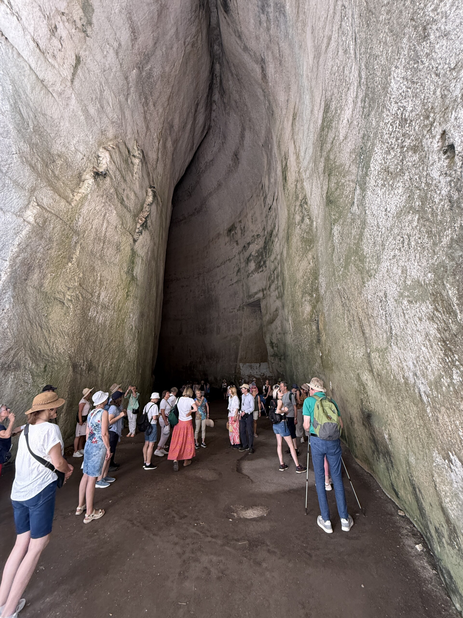What Kathie and I found fascinating were the caves used by slaves to quarry stone to make the theaters. One cave is known as the “Ear of Dionysius” as rulers would eavesdrop on the slaves below.