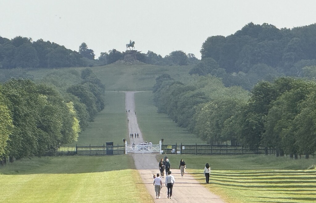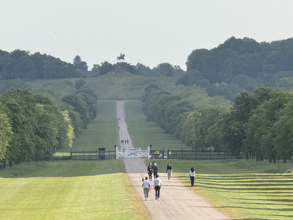 A man on the horse, a statue of King George III, known as “The Mad King” is at the end of walking 3 miles (and 3 miles back!). At the statue, I had a conversation with 2 teenage boys: Markus and Ryan. They lived in the town of Windsor and did a weekly walk together. I asked them who was on the horse? They said it was a Prince. I told them the story of King George III who basically helped create the United States. They did not go to the private school of Eton, but enjoyed their public school nevertheless.