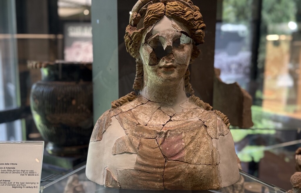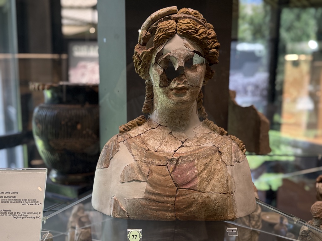 We walked the half-mile to the Archaeological Museum. In hind-sight we should have called for an UBER as it was hot. The map made the sites seem relatively close. The museum was well air-conditioned to our benefit. The two-floor museum is considered to be the finest museum in Sicily. Although, we preferred the one is Agrigento. You just can’t beat that 40-foot statue of Telamon. There were a good number of artifacts at this museum though.
