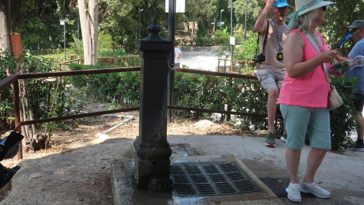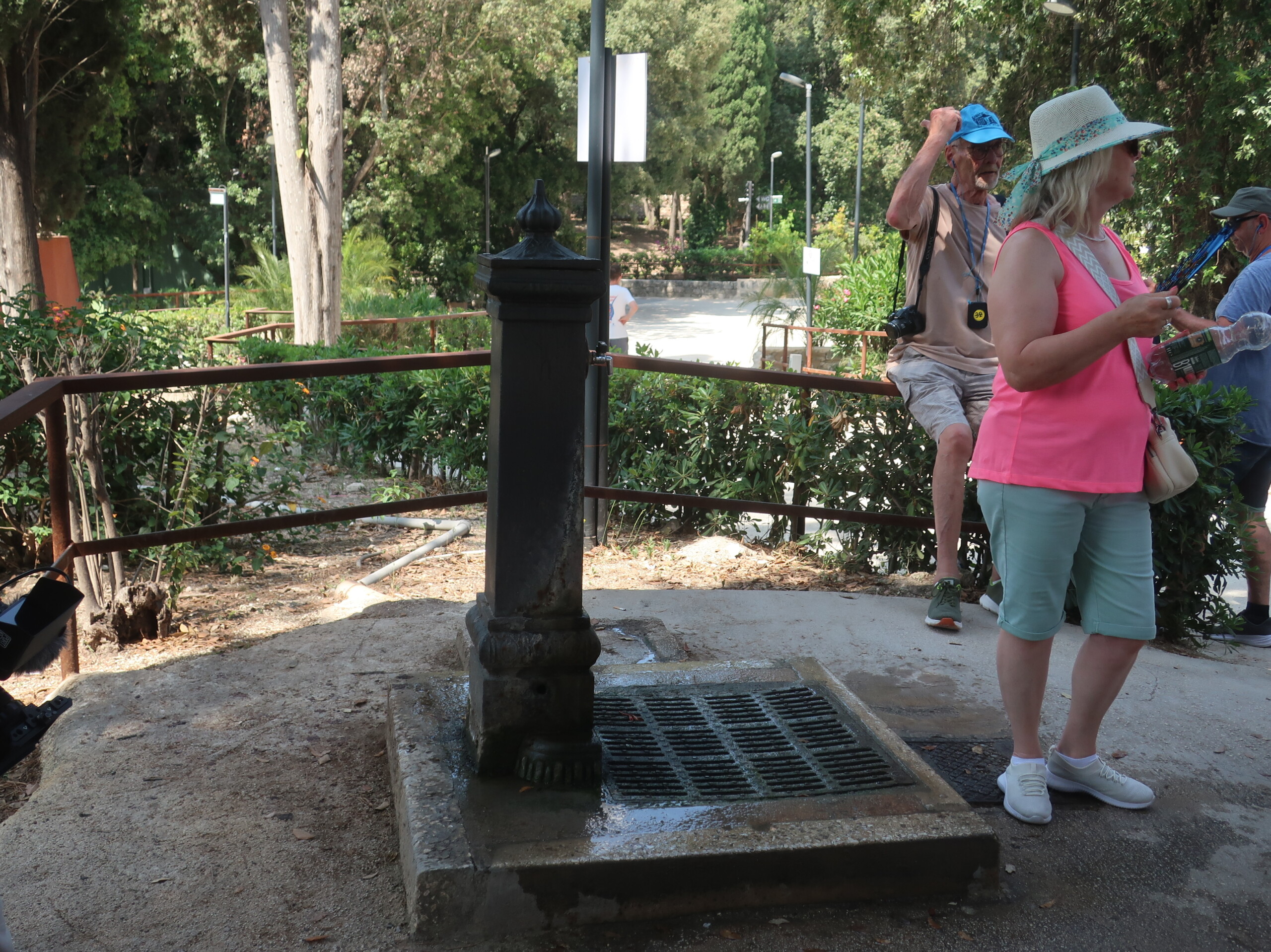 The temperatures in mid-June were hot. Luckily, there was a water spigot at the base of this theater. No cold water fountain here though.