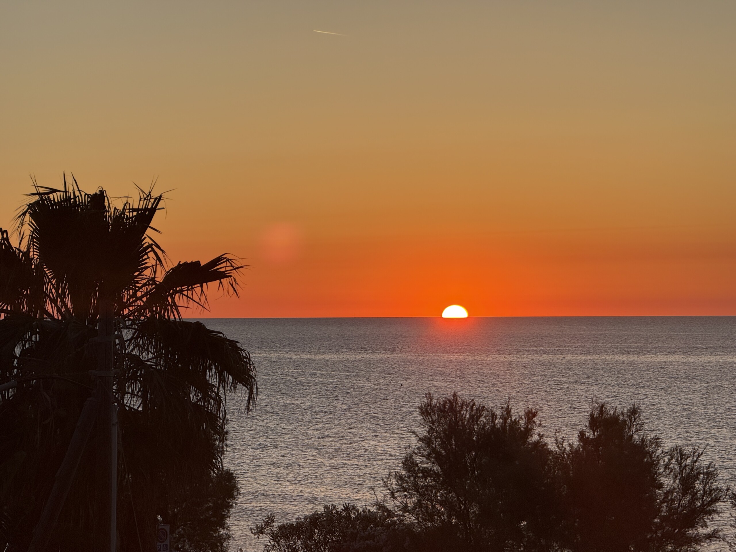 We did have salad and a quattro formaggi pizza for a late lunch overlooking the Mediterranean Sea. Just 125 miles southeast of us was the island of Malta. We had a friendly visitor as we enjoyed the remaining sunlight.