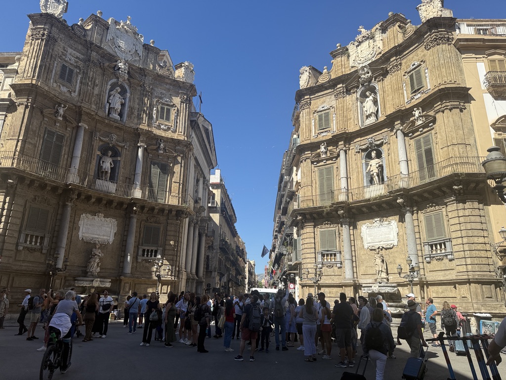 One of our first attractions was walking to Quattro Canti, also known as “Four Corners.” This intersection became our reference point in our walking around the city. Literally four corners come together in Baroque architecture represented in statues of the four seasons.