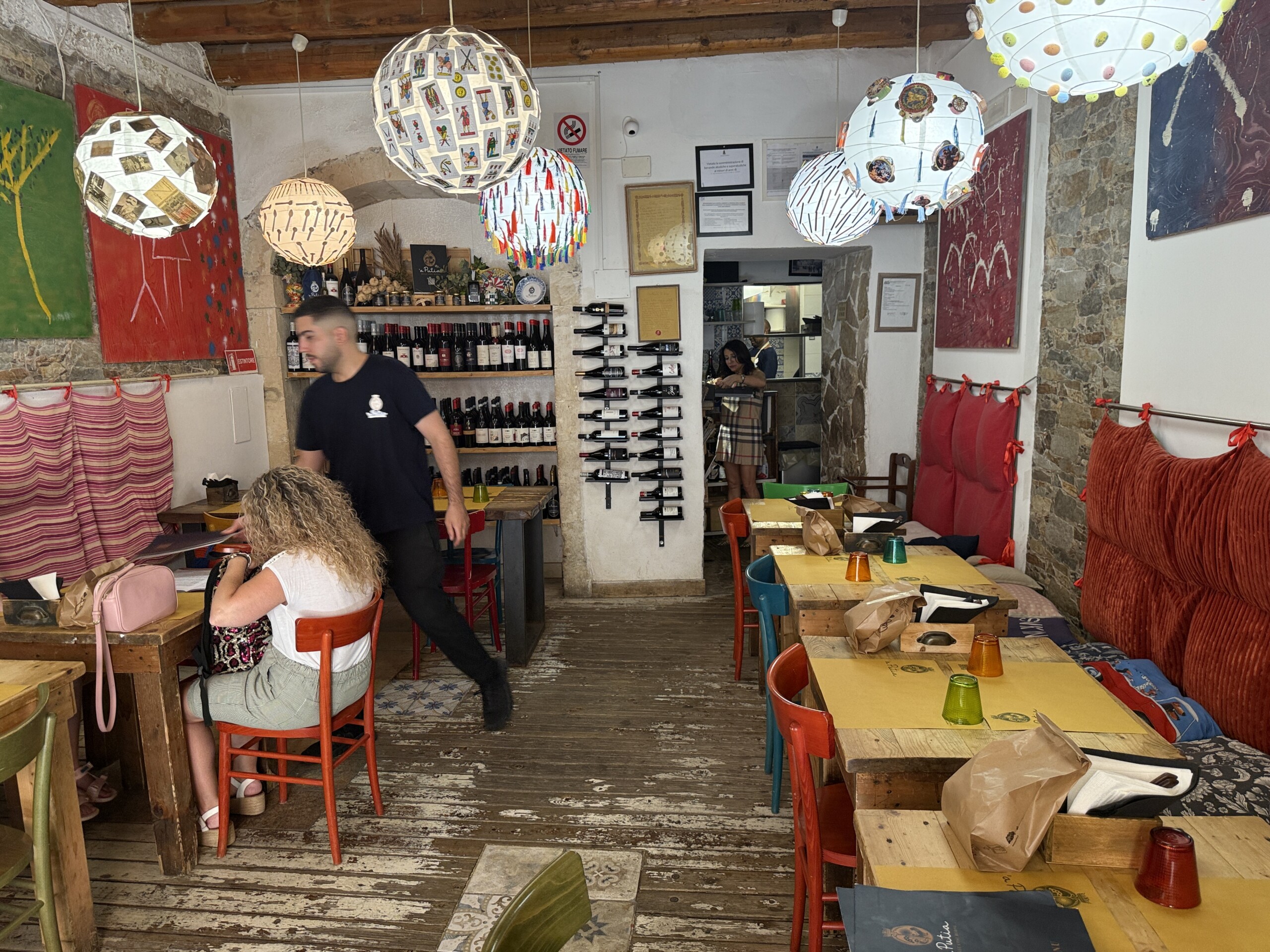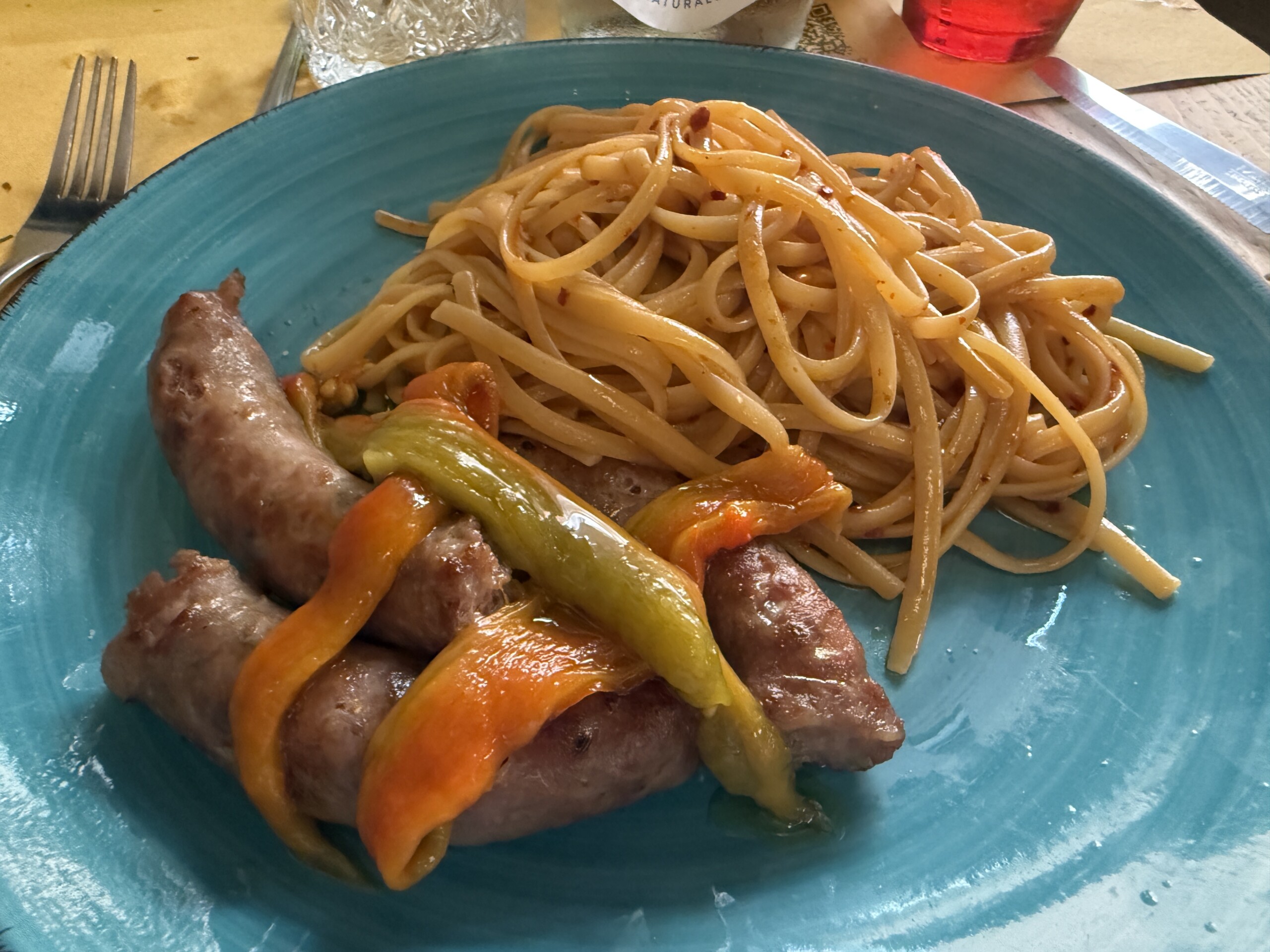 On another alley, we found a café known as “A Putia.” One of the informative staff members at Henry’s told us about it. A husband-and-wife team operates this small establishment serving genuine Italian food. Kathie had a number of salads as I enjoyed pasta with sausage made from a local village. The meals were delicious and we ate here not once; not twice; but three times! It was that good.