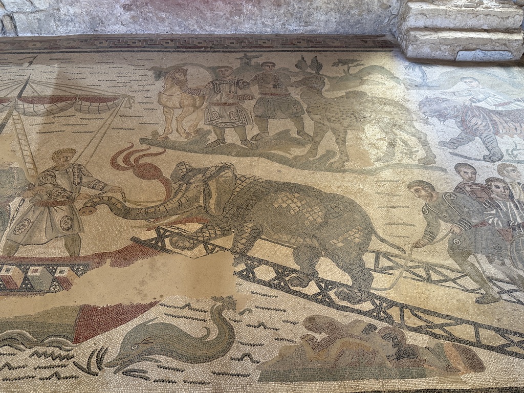 We came upon this remote location where a Roman senator had a villa that was 37,000 feet. The mosaics that were found has made this villa famous. The mosaics depicted someone who was involved with exporting animals.