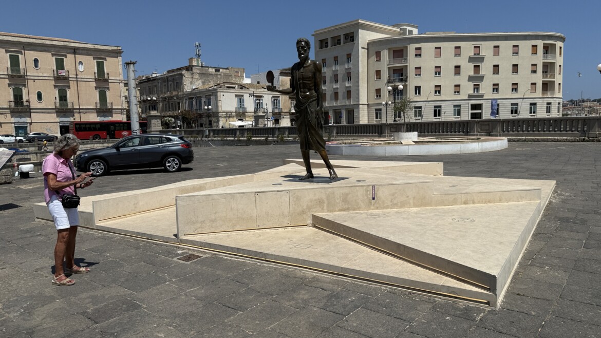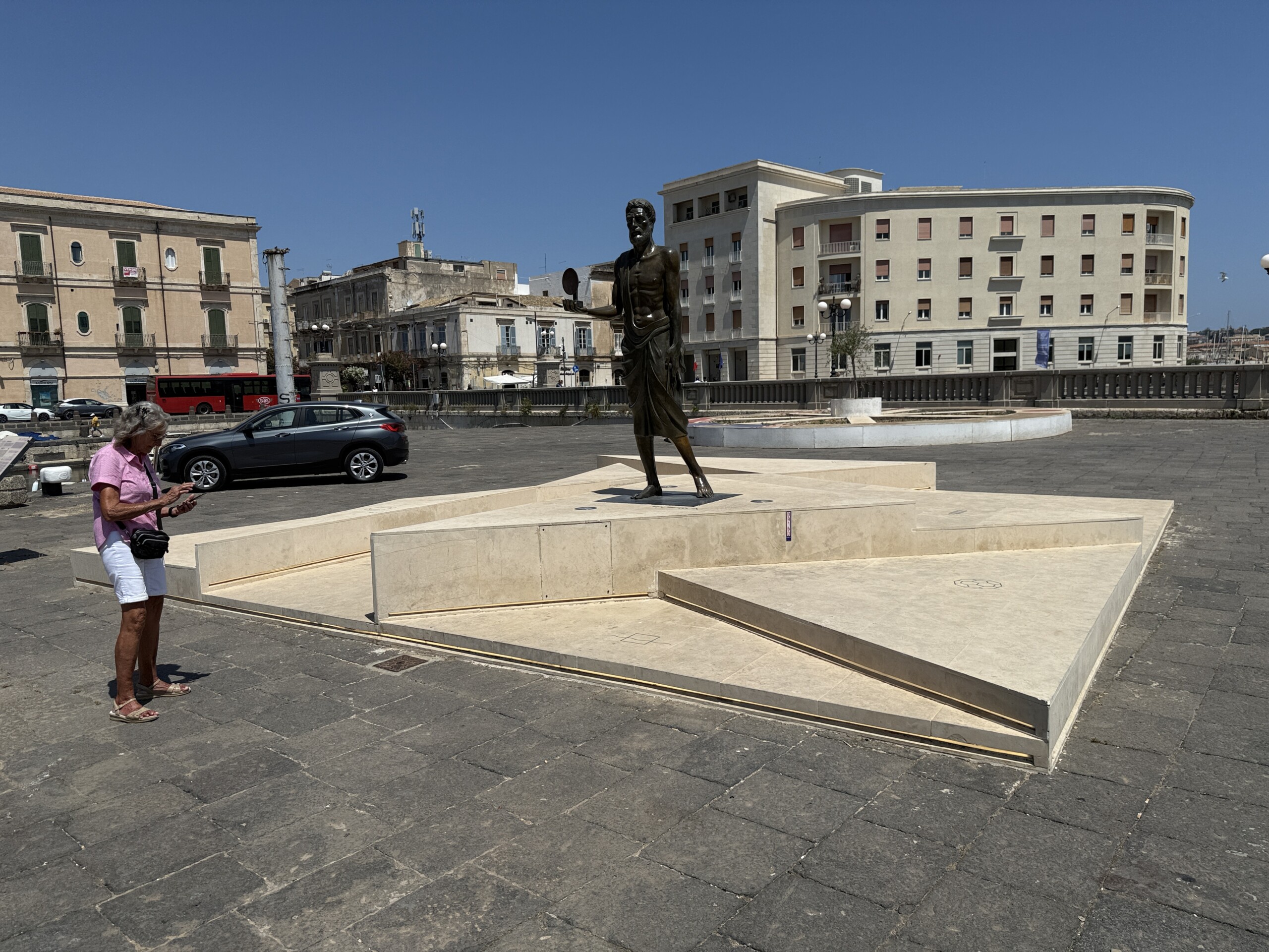 There are two small bridges which connect Siracusa to Ortigia. On a separate small island is the sculpture of Siracusa’s famous mathematician and scientist, Archimedes (c.287-212BC).