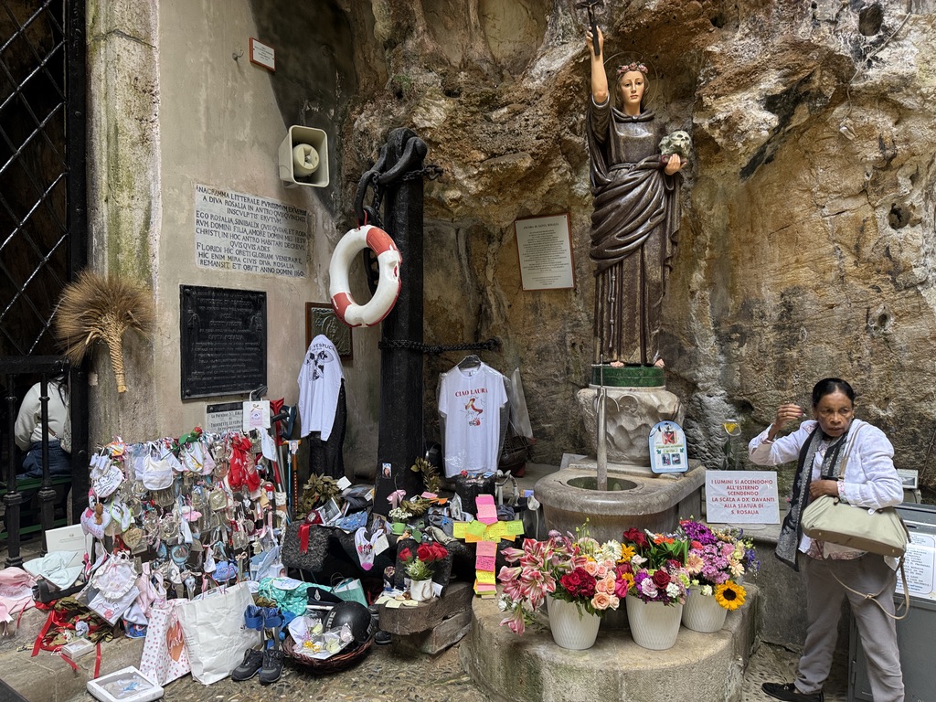 The bones from a 12th century future saint were found in this grotto during the 17th century. On July 10th every year Saint Rosalia is honored with a major parade. This grotto is a most loved pilgrimage site. Our visit was on a Sunday and we even saw a mass performed in the Grotto. The experience was quite moving.