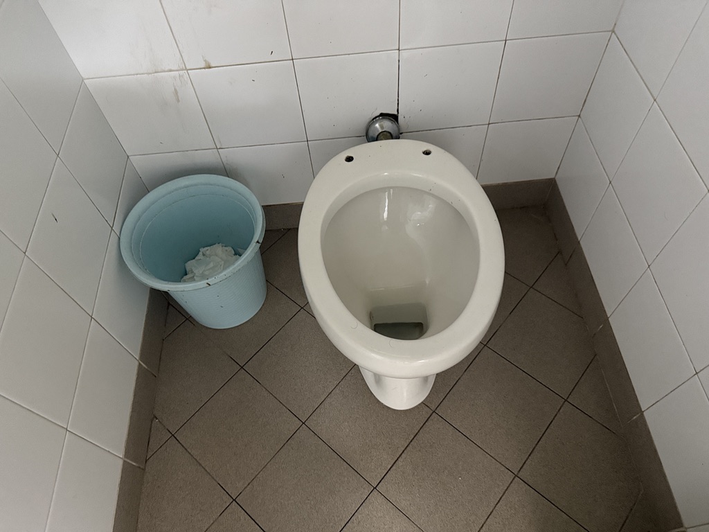 The bathroom was just down the hill. It was a bathroom where you had to pay for. And there was no toilet seat. The pleasures of travel.
