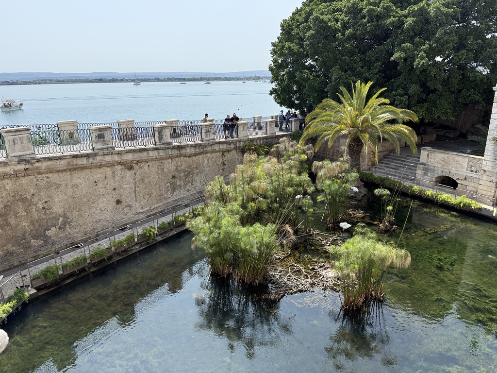 Close by is the Fountain of Arethusa. It is a fresh water spring that were used by the Greeks in 8th century B.C. It later became an area for tanneries and until 1800’s a community laundry. Today, it is known as the “fountain of the ducks.” Papyrus still grows in the spring—the same substance to make writing material used by ancient Egyptians.