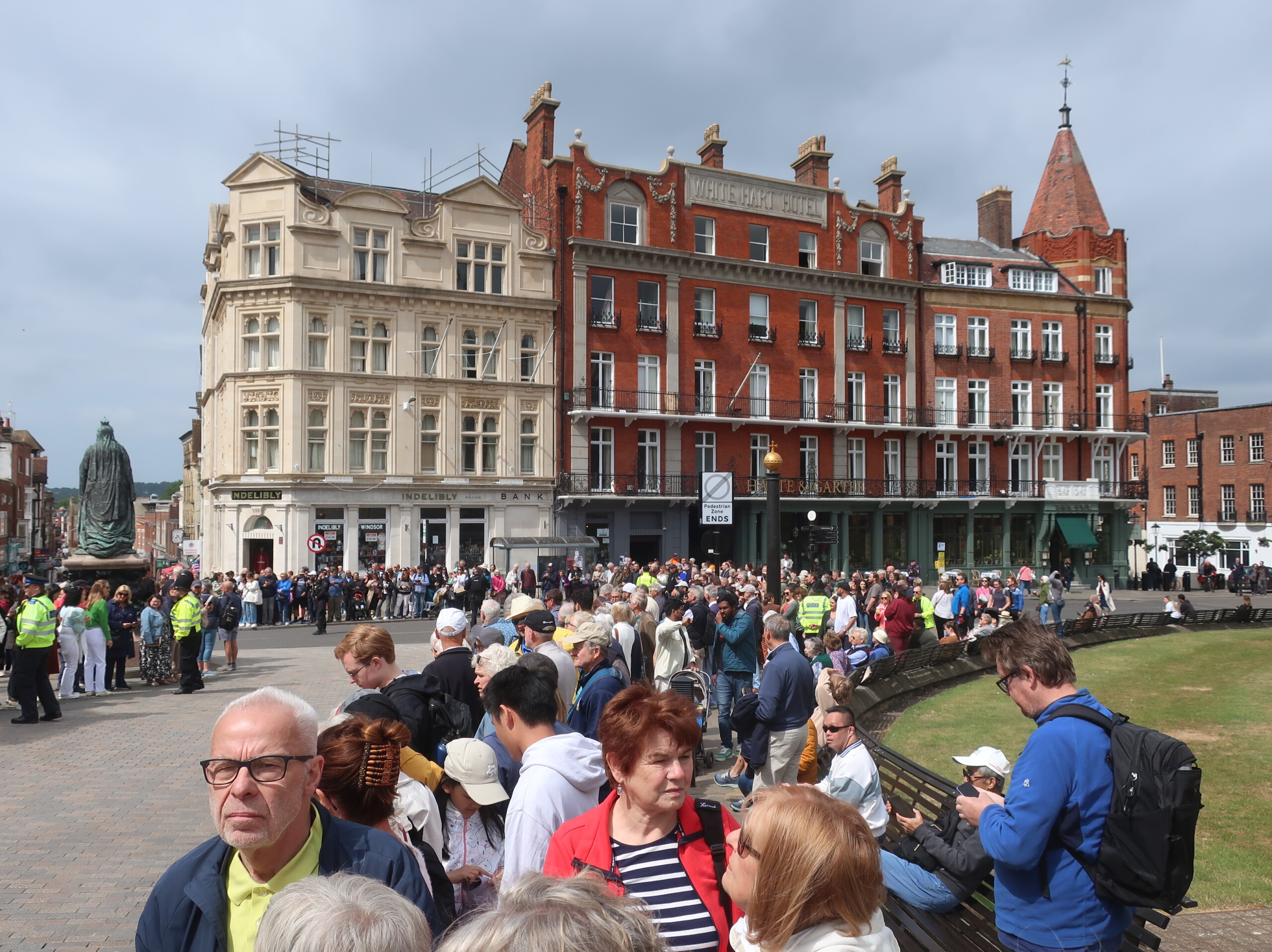 Literally thousands of people come to see the Windsor parade. On our second viewing we snagged a spot on a long bench by the castle.