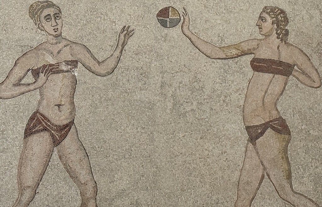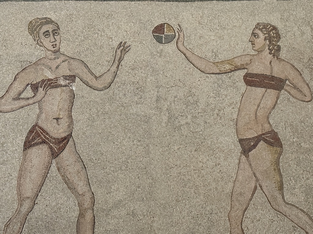 My favorite mosaics are “the bikini girls.” Women are depicted running, lifting weights and even playing what appears to be beach volleyball.
