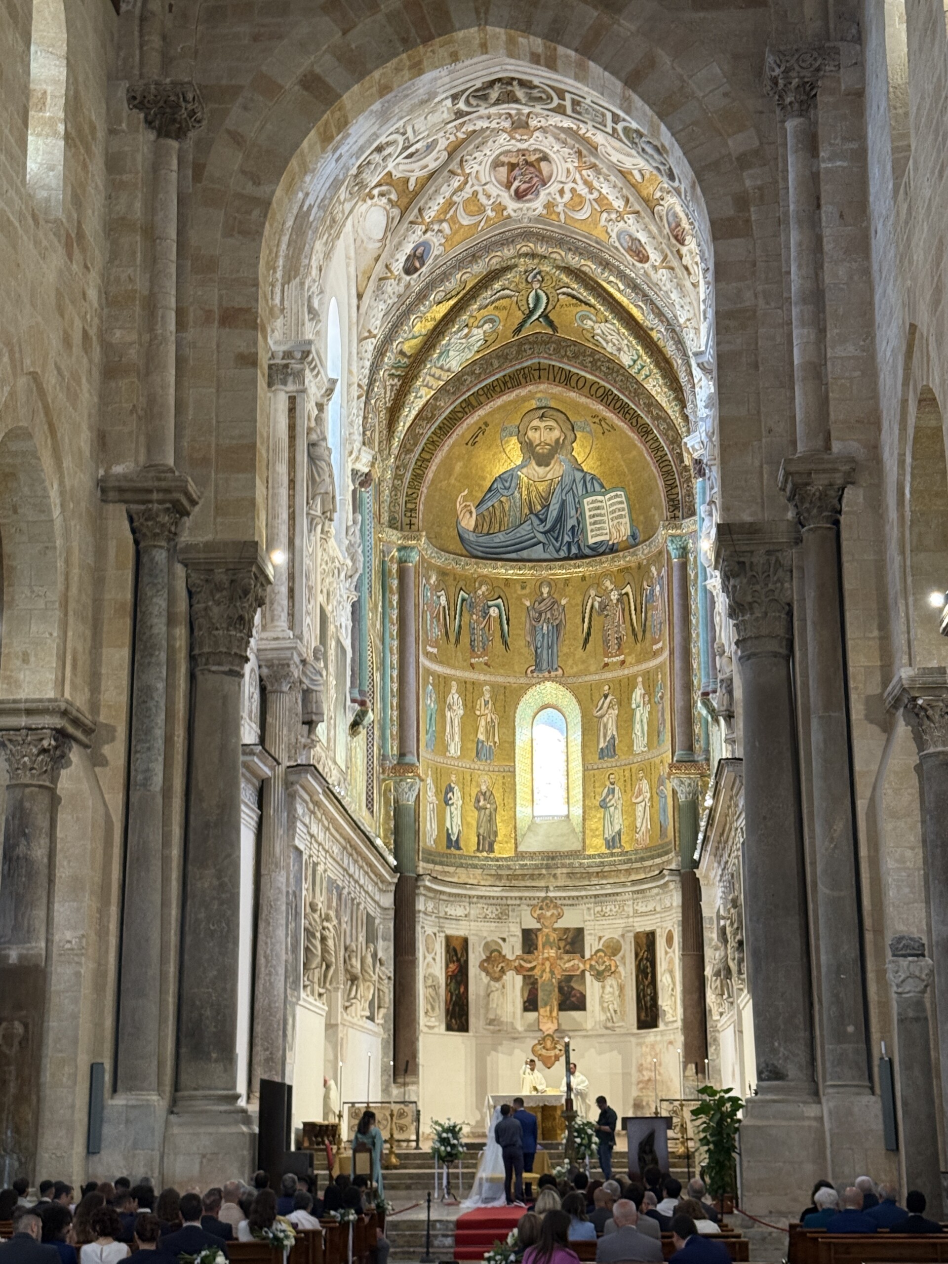 Cefalu is famous for their Norman Church which was built after Monreale was finished. I would suspect the workers came from Palermo to work on this Cathedral as the large Christ figure was identically the same. We witnessed a wedding going on in this 12th century AD church.