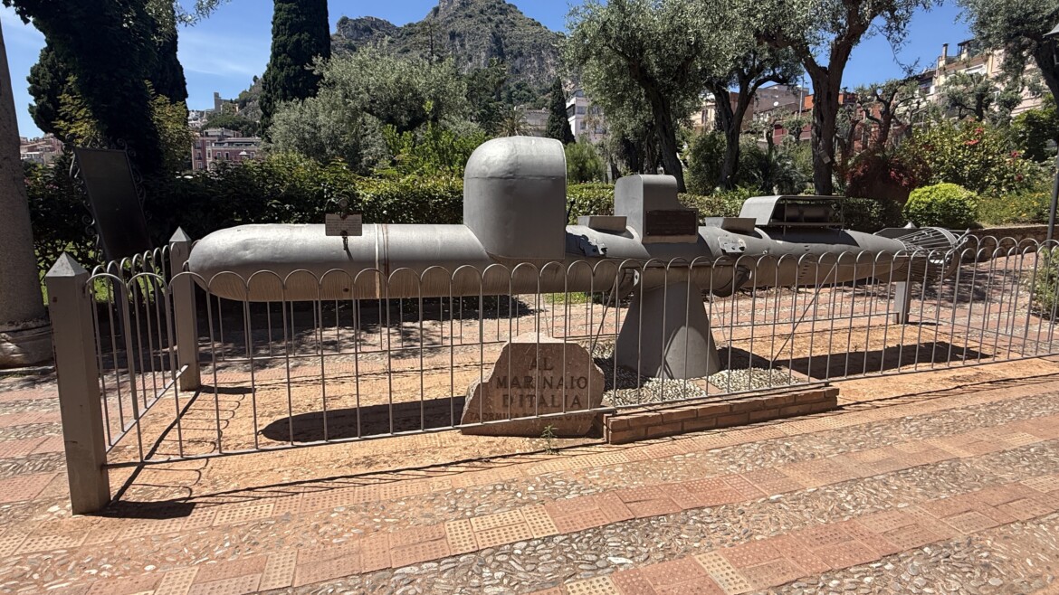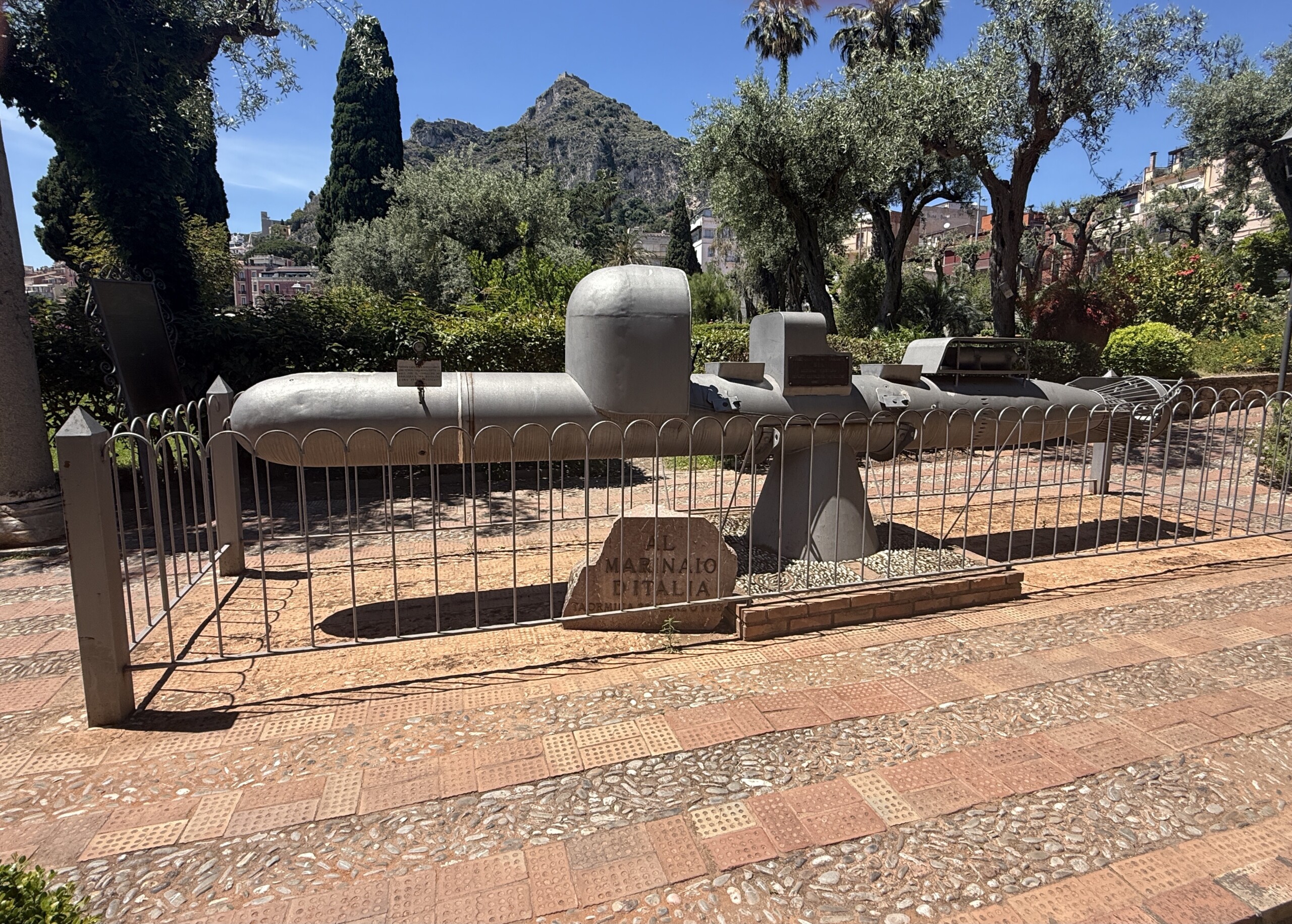 Nearby was a park which overlooked the valley too. A section of the park was dedicated to the Italian Army. There was even a one-man sub—known as Maiale, or “pig” on display. Parts of Taormina were heavily bombed during WWII.