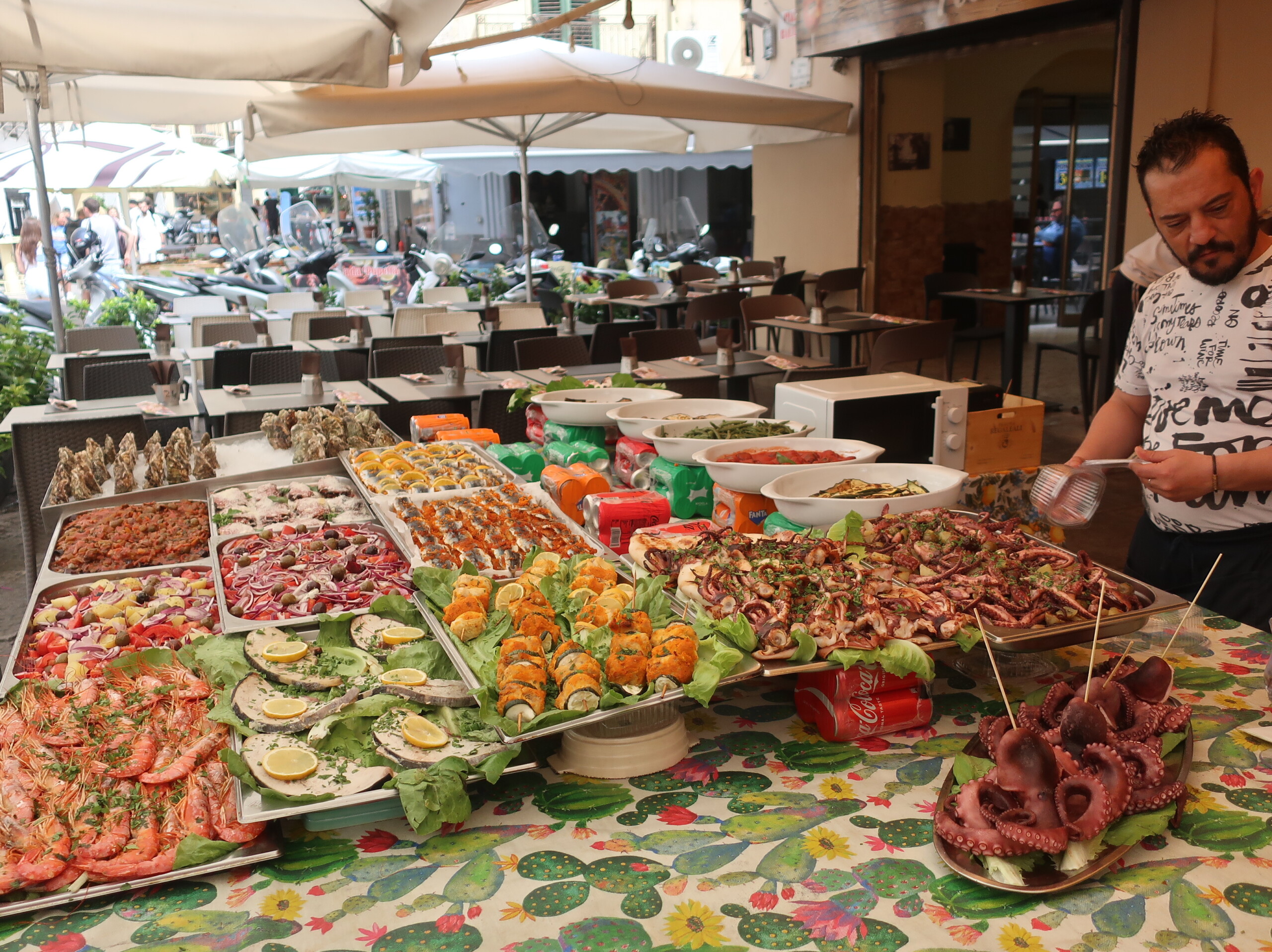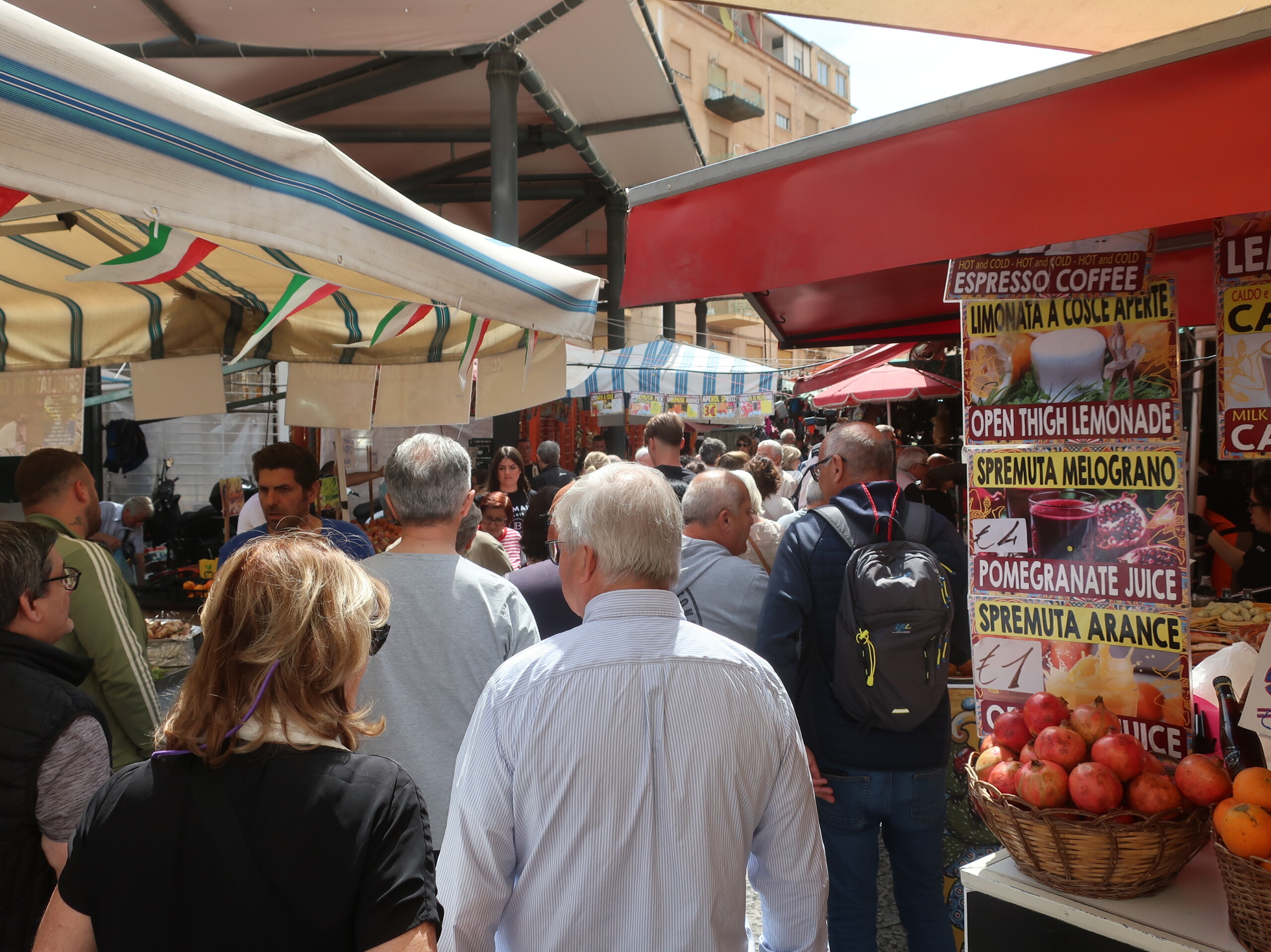 One of our major highlights of Palermo was walking through the Ballaro Market area. A combination of food stuffs like fish, meat, vegetables and touristry items were for sale. Some of the vendors would actually sing in a loud voice. It is quite crowded and intense.