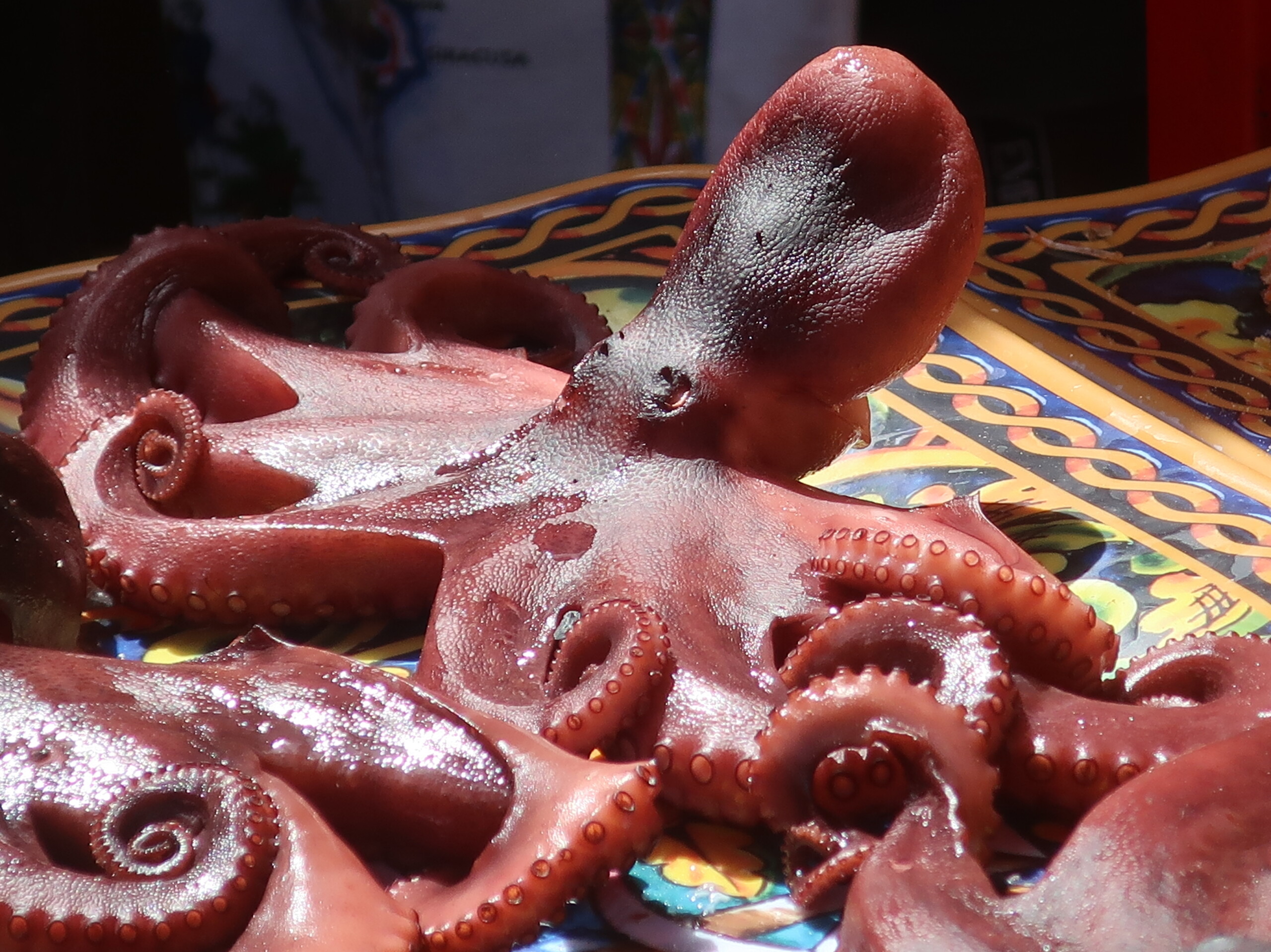 The Ortigia Street Market was not as lively as the Ballero Market in Palermo. Although, it was crowded nonetheless. it was fun to watch the various sellers with their fish, octopuses and meat products.