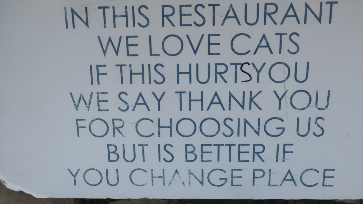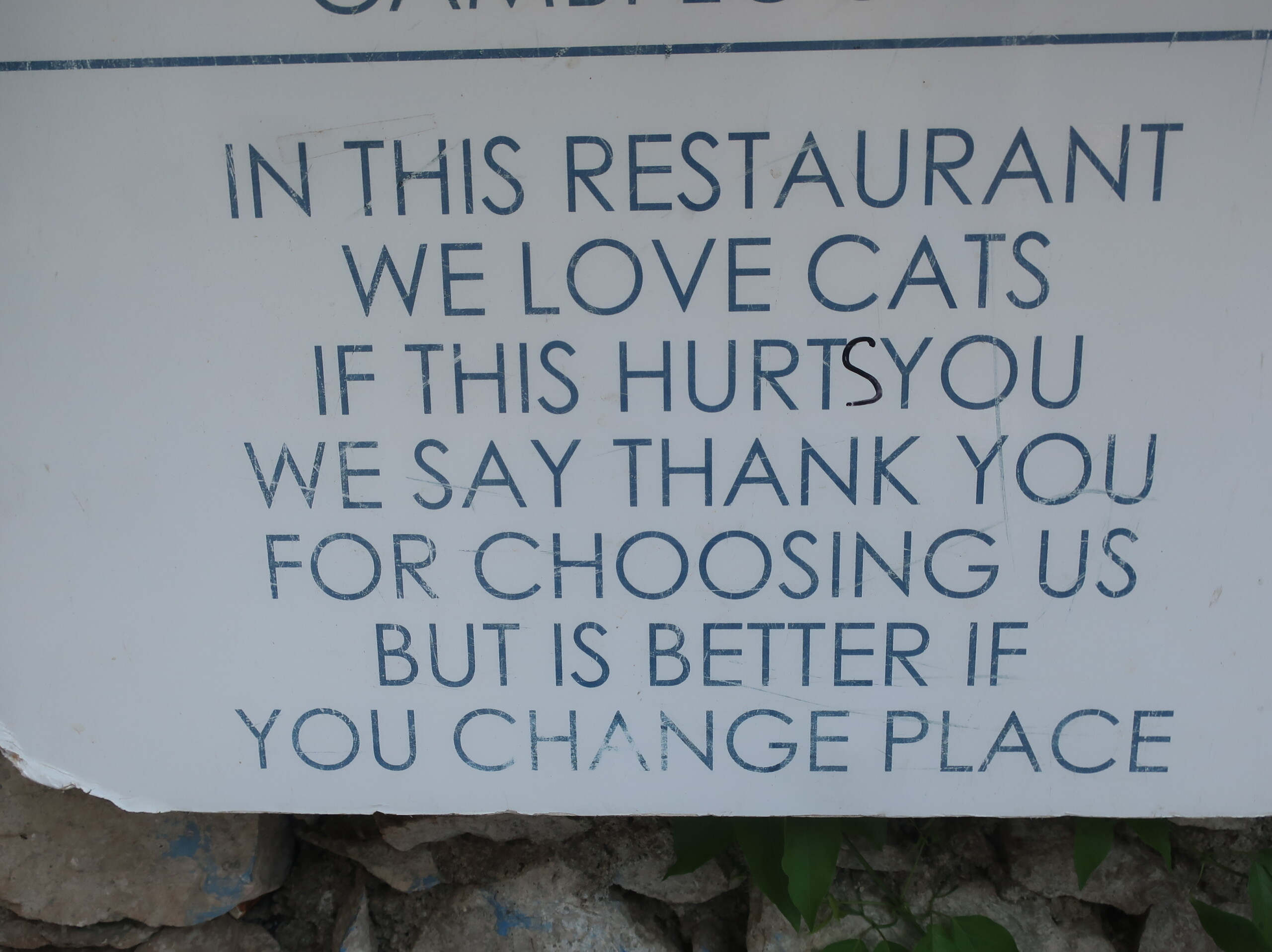 Cats are indeed important in Sicily. I found this sign by one restaurant warning about their cats: