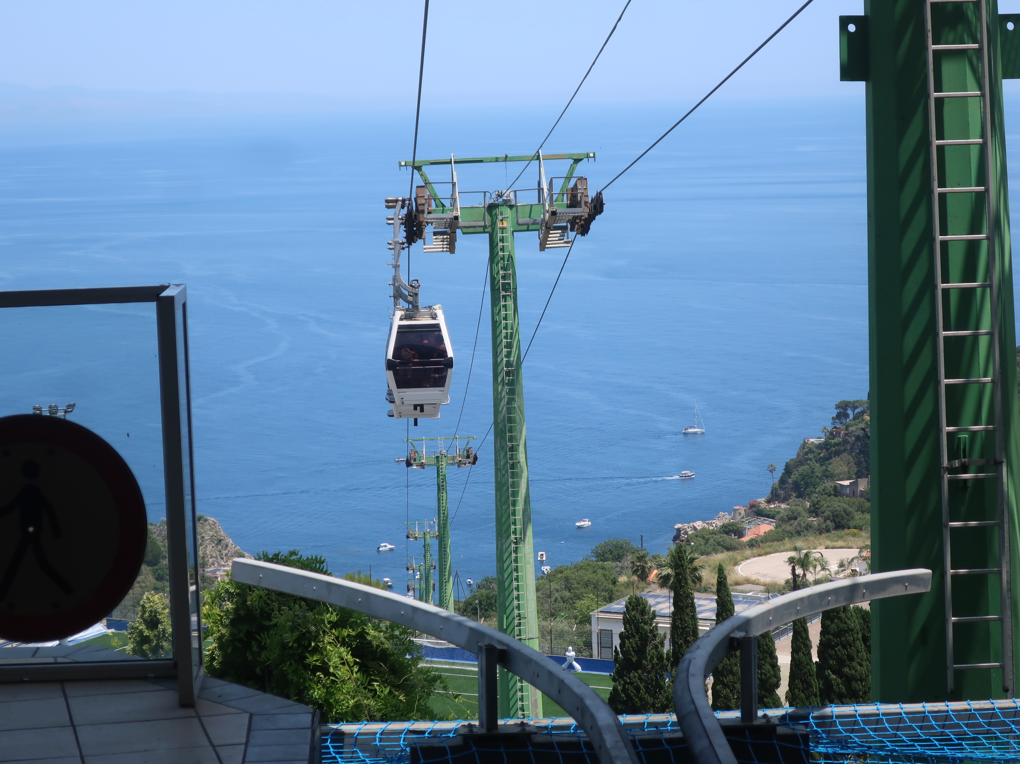 We did not walk up to the top of “La Rocca,” a rock formation that dominates over the city nearly 900 feet high. There are supposedly ruins of a Norman castle close by. There is always something you don’t get to see the first time visiting. La Rocca was our miss besides not traveling up to Mt. Edna. Onward on the train to famous Taormina.