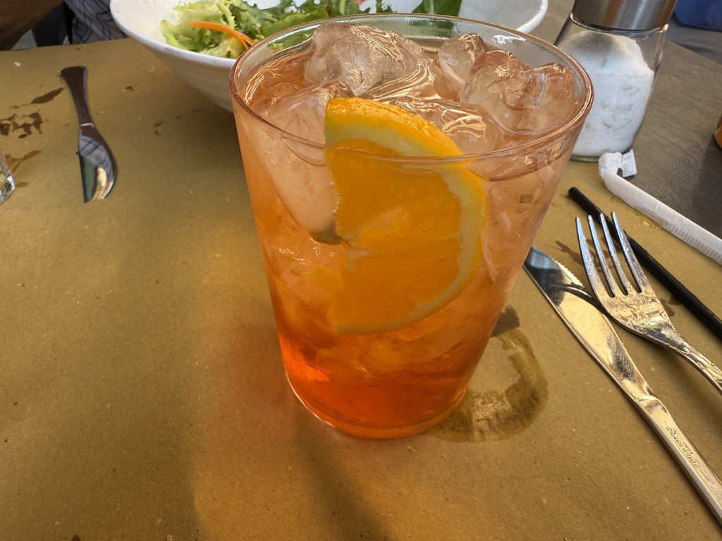 I did try the popular Italian drink known as “APEROL.” It is orange in color and indeed quite refreshing. It’s made with Prosecco, Aperol and a splash of soda water. A popular drink in Sicily and mainland Italy.