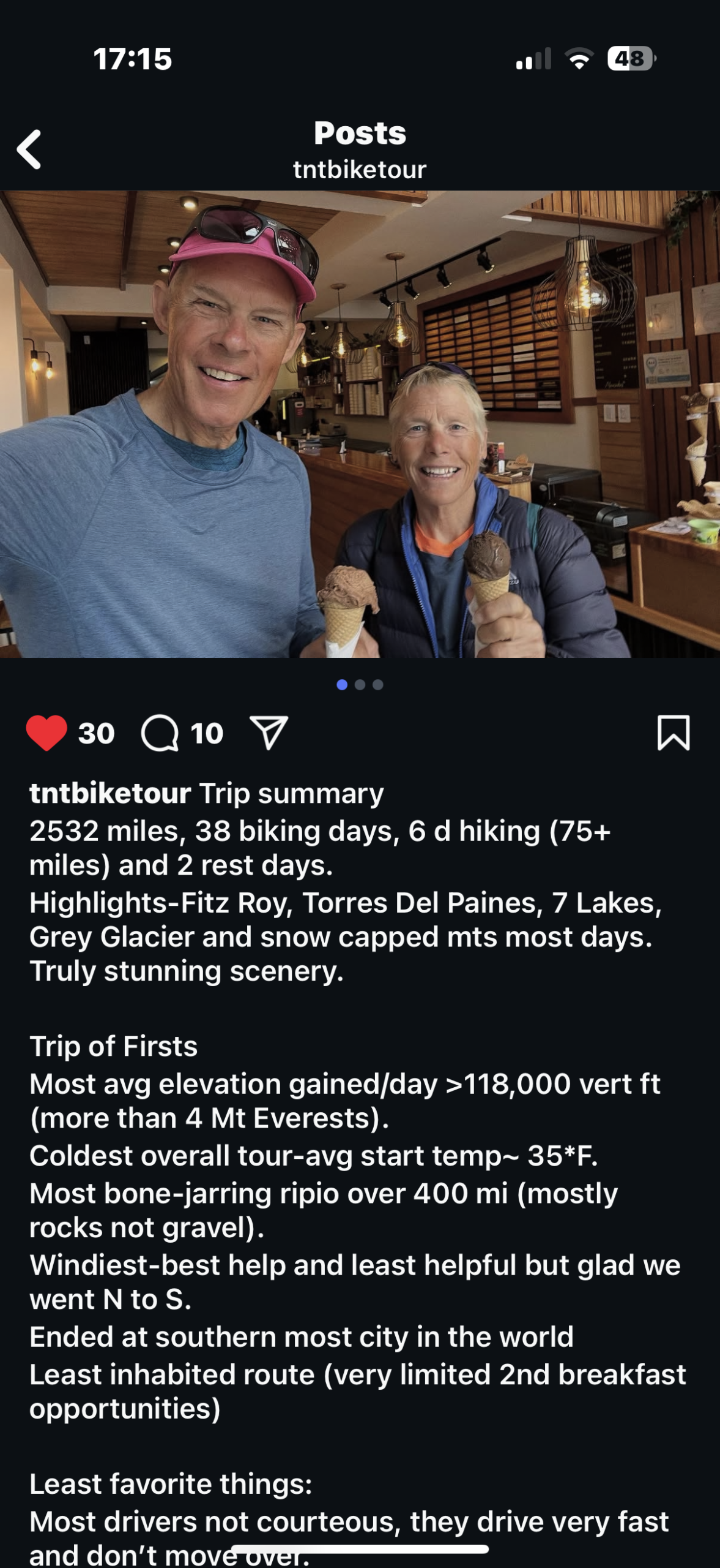 At breakfast, we happen to meet Tim Johnson from Colorado. He and his 88-year-old dad were making a trip around Sicily by car. Tim’s dad always wanted to see Sicily. This venture was a Father-to-son time. Tim did tell us that he and his wife, Tracy, were bicycling over a month down the spine of Chile and Argentina to the most southern city of South America. We are following them on INSTAGRAM: tntbiketour. There next journey is to take a ship to Antarctica.