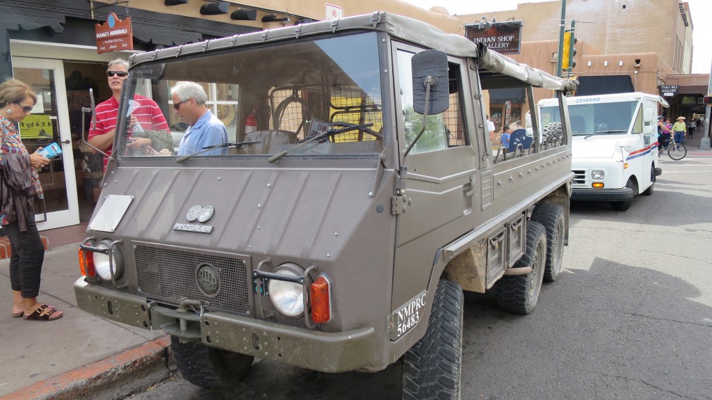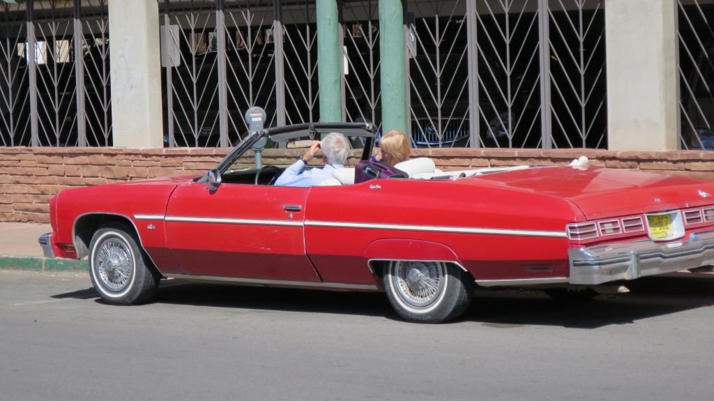 We rented a car with Budget through Costco. It saved us $50 dollars compared going to Alamo. The salesman tried to convince us that our “compact” lacked power going up 7000 feet to Santa Fe. We said “NO, thanks,” and our Ford Focus did just fine. They wanted to give us a SUV for $15 dollars a day more! Ironically, I never did take a picture of our red Ford Focus, but I found these four other vehicles that made the journey to Santa Fee too!