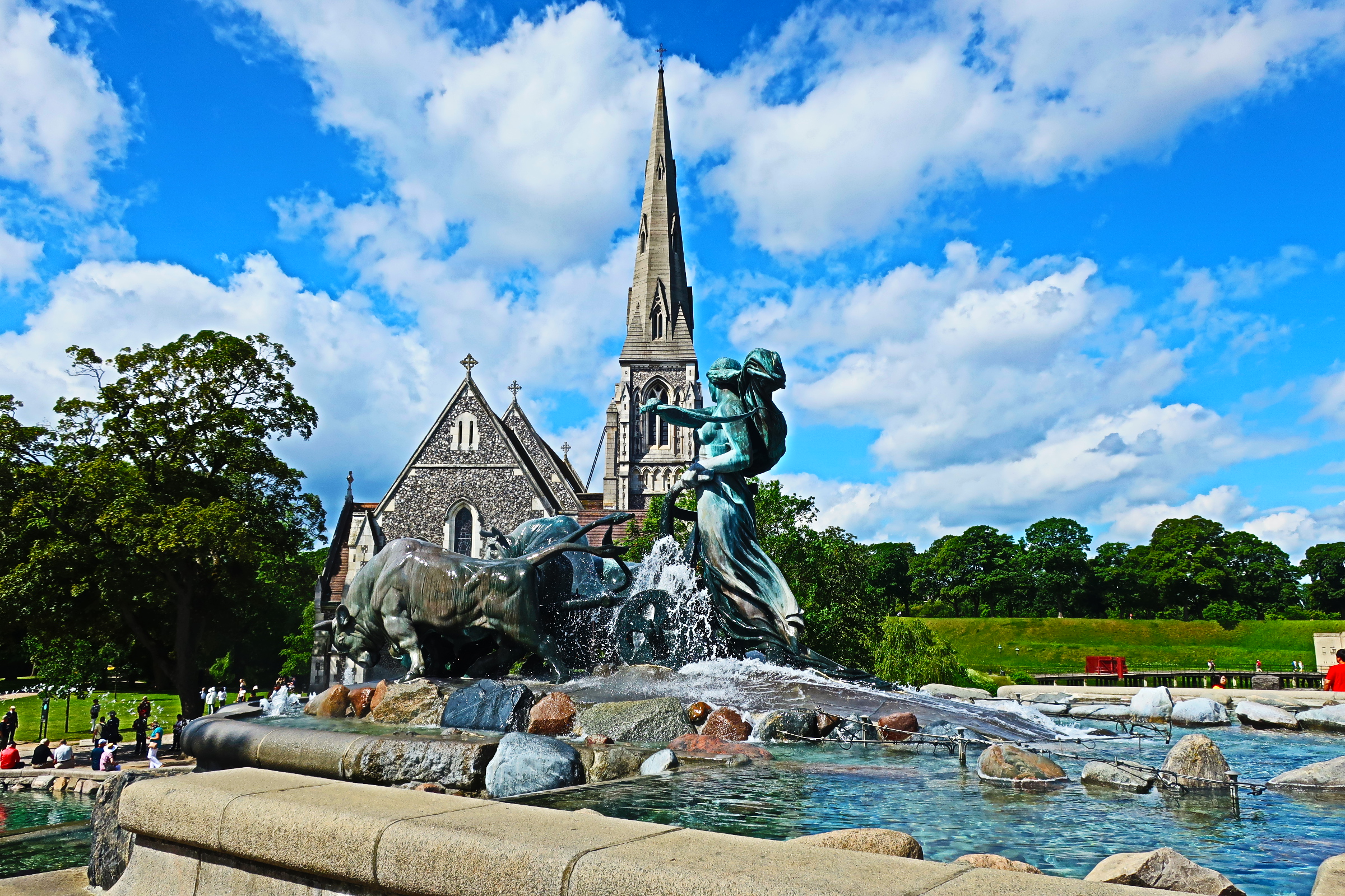 Walking back, we did stop at the beautiful Gefion Fountain.  A group of oxen are being driven by the Norse goddess Gefjon. It does make a nice picture with the St. Alban’s Church behind.