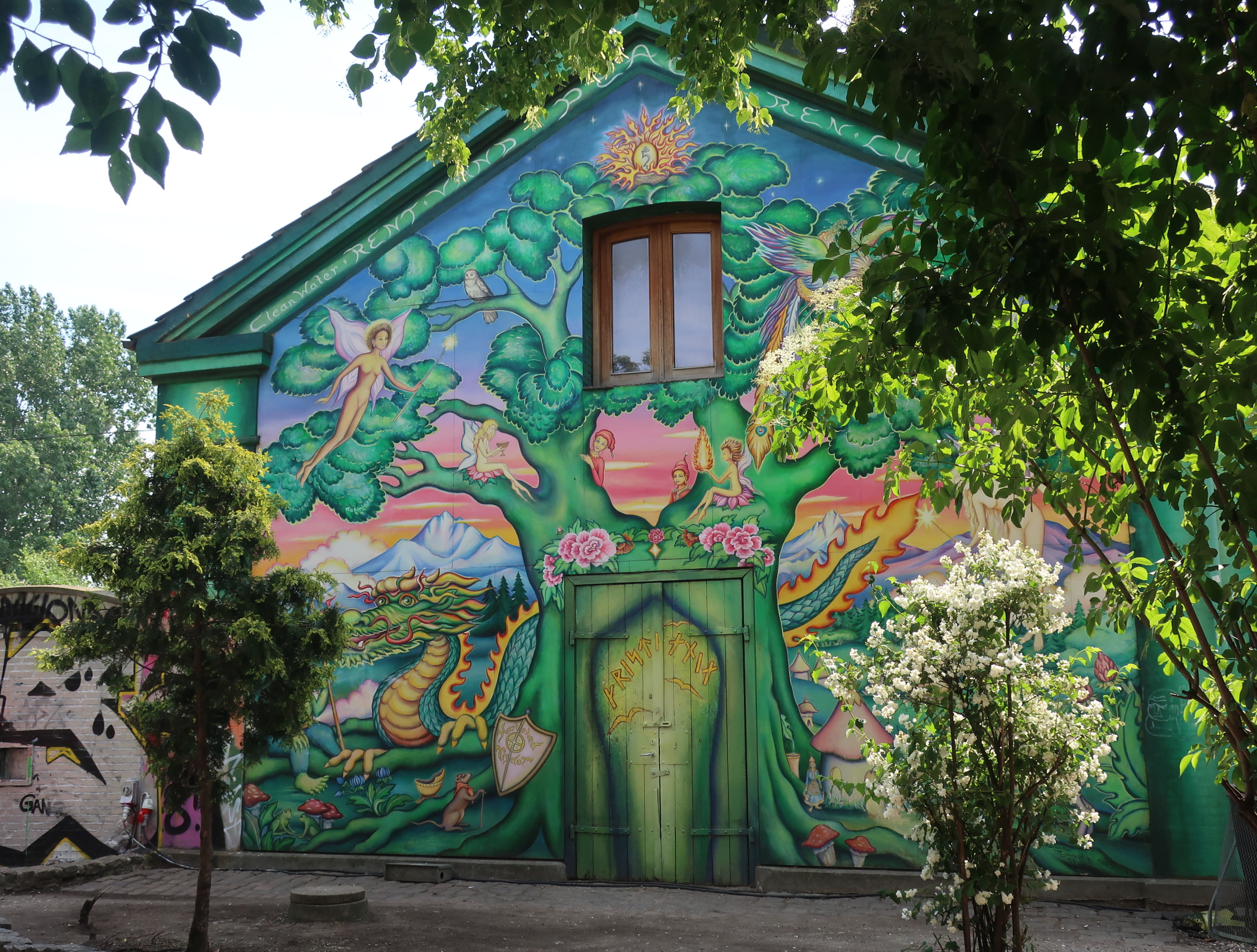 This is an international community and commune of hippies.  About a thousand people “squatted” over an abandoned military area in 1971.  It has become a thriving village.