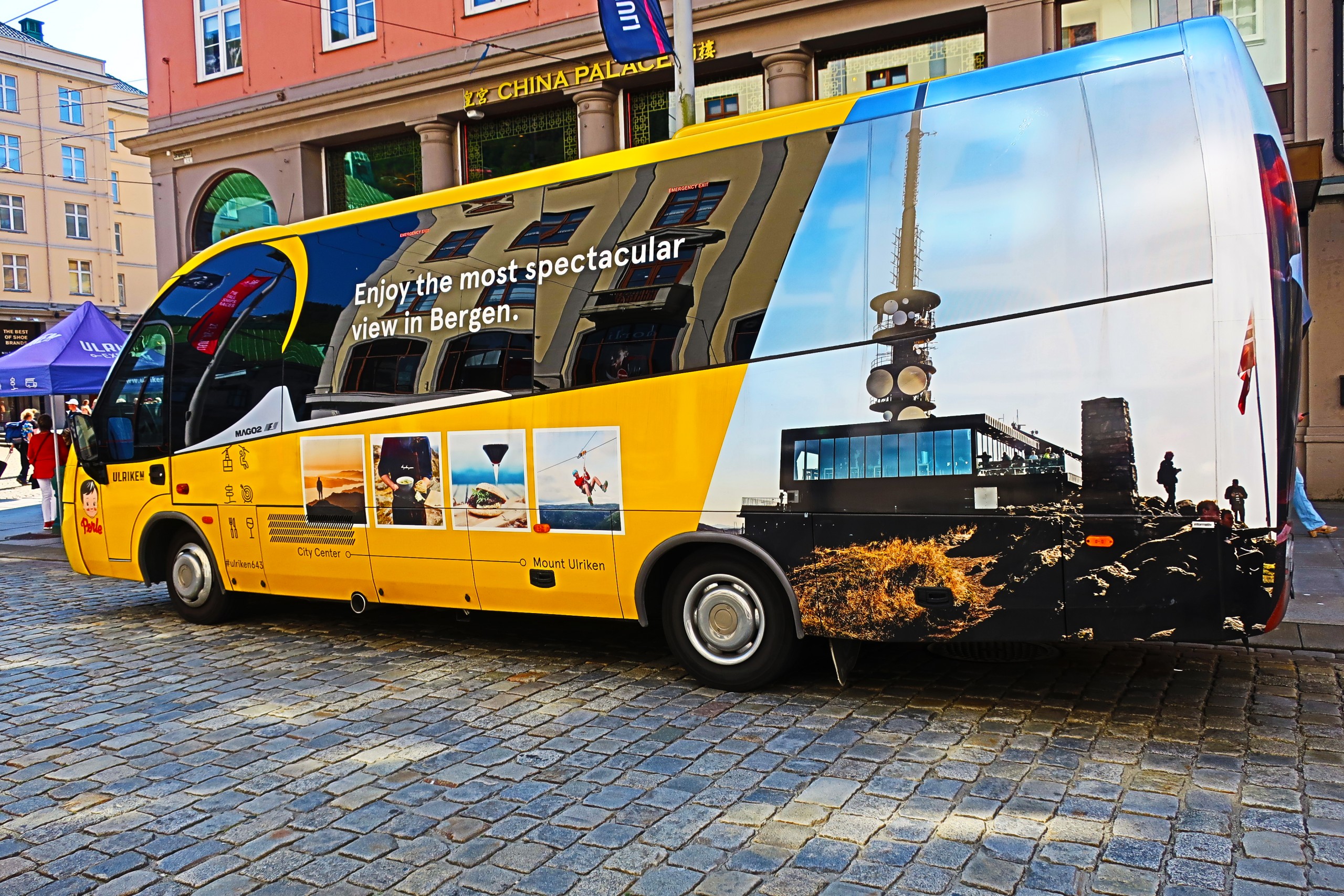 From downtown, there is an actual dedicated bus that will take you to the cable car up Mt. Ulkriken.