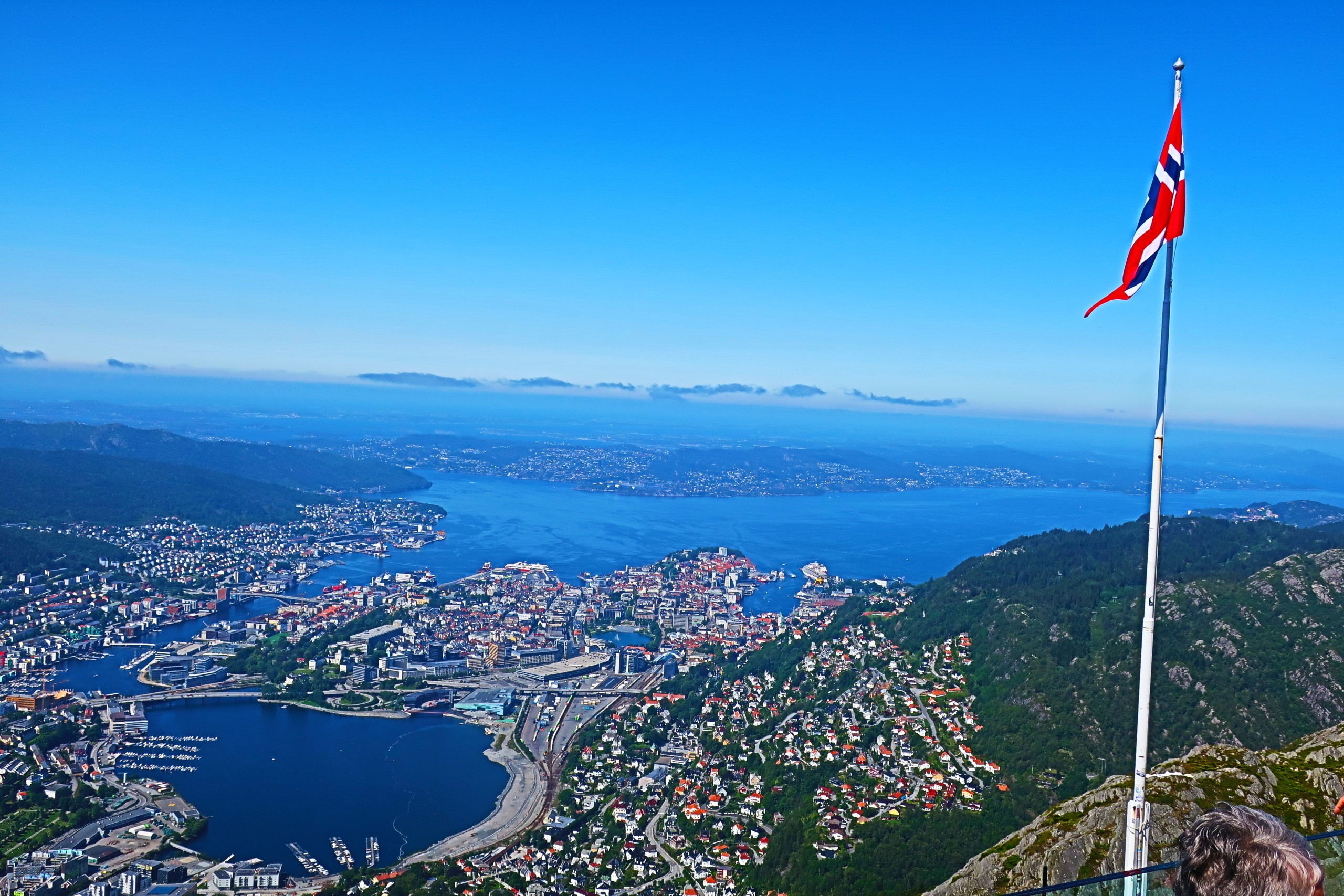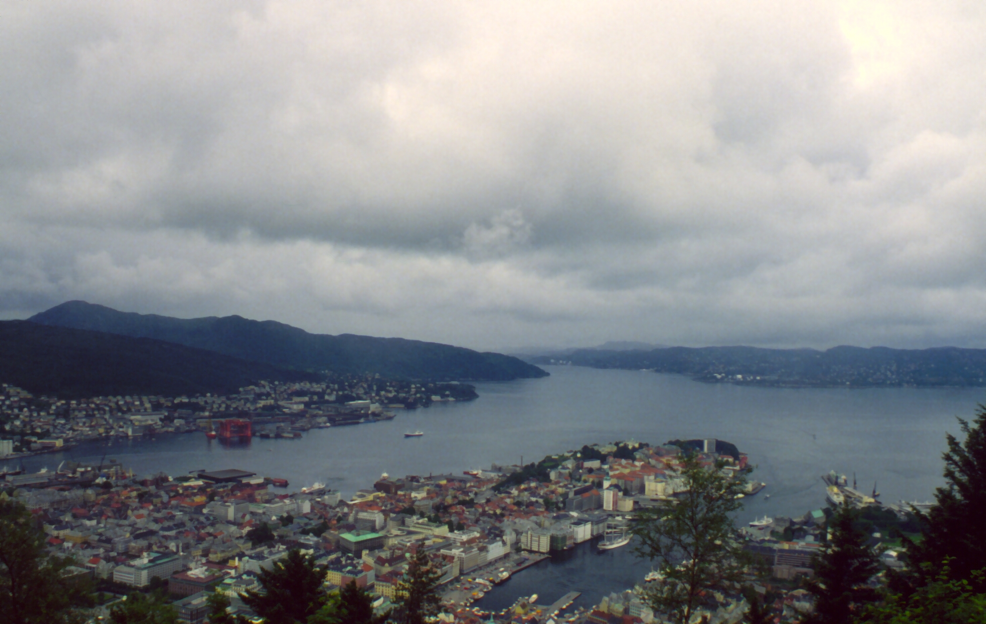 Bergen is not directly on the ocean, but is on an inland sea with navigable harbors. The mountains form a “block” for the clouds to unleash its blessings on the earth. In 2019, we had three days of sun–go figure!