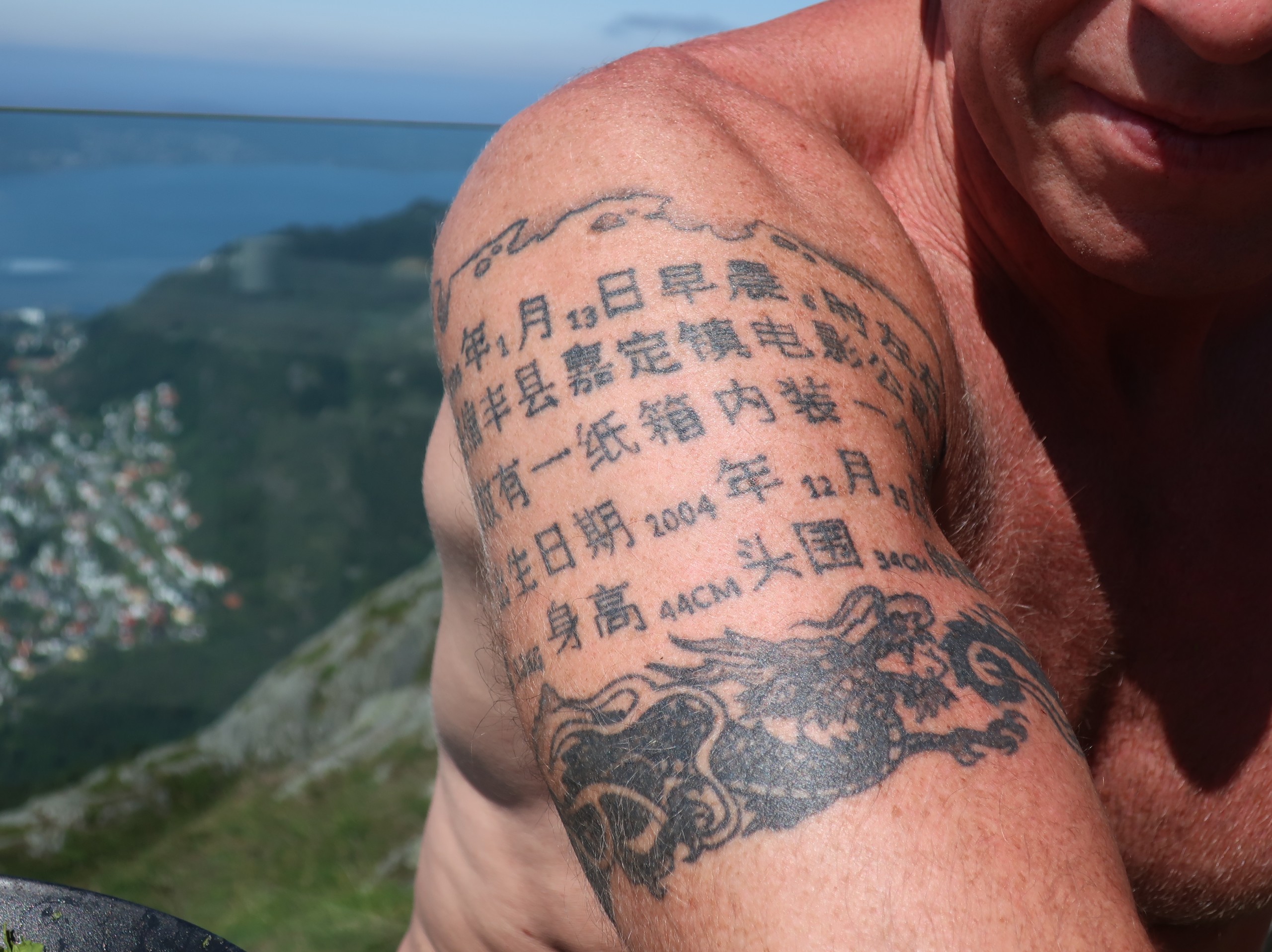 Somehow, conversation started between us. He had just run up the mountain in about thirty or so minutes. Ketil works as a professional trainer. He is married and they have adopted a Chinese child. Ketil has tattoos in Chinese placed on his arm to “always remember her roots by.” A person who looked quite mean, was actually quite pleasant.