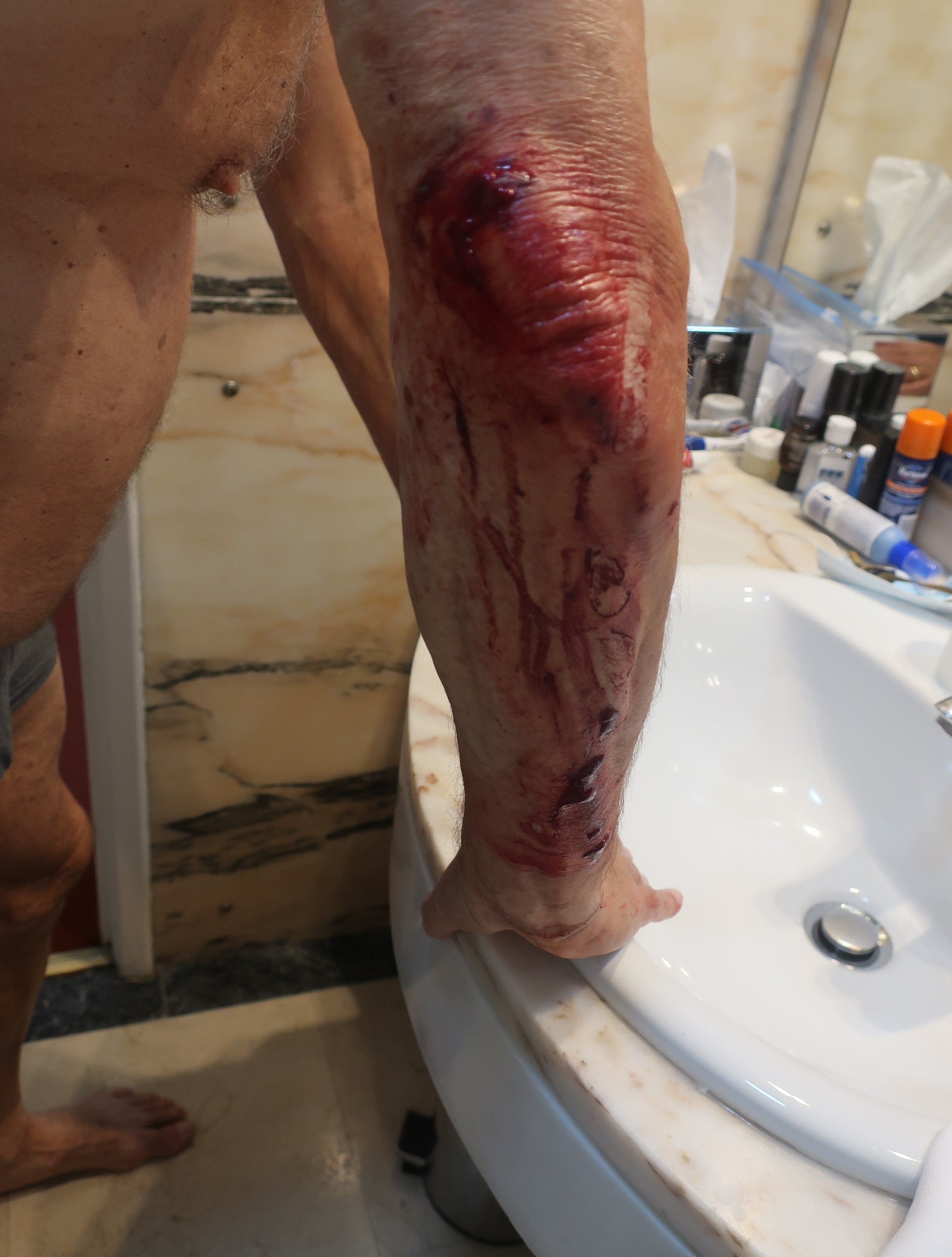 For some reason, as I was coming down, there was a man and his baby coming up.  I had to slip around him on the narrowest of steps.  Sure enough, I fell. I attribute my surviving this fall from having played American football for 8 years, pressing weights for over 50 years and just luck.