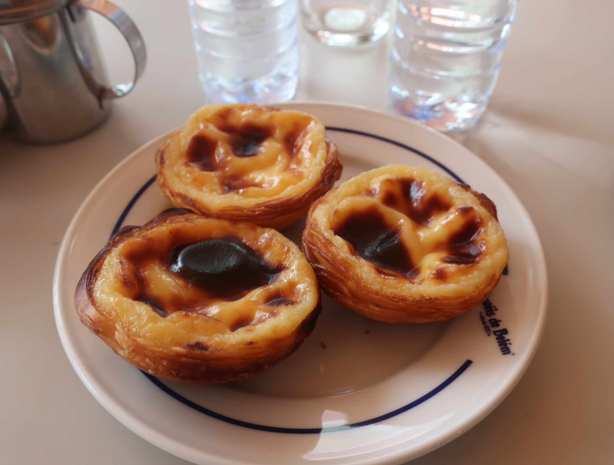 Monks developed the tart recipe ages ago.   This secret recipe has been in the hands of this one family since 1837.  Actually, visiting the Pasteis de Belem restaurant is an experience.  There is usually a long line waiting to purchase these Pasteis.  Or, do what we did and go into their restaurant and enjoy the Pasteis sitting down.  At the time of this writing, one Pasties de Belem cost 1.20 Euro (just over a dollar). We purchased three with a small pint of water. I prefer the original version!