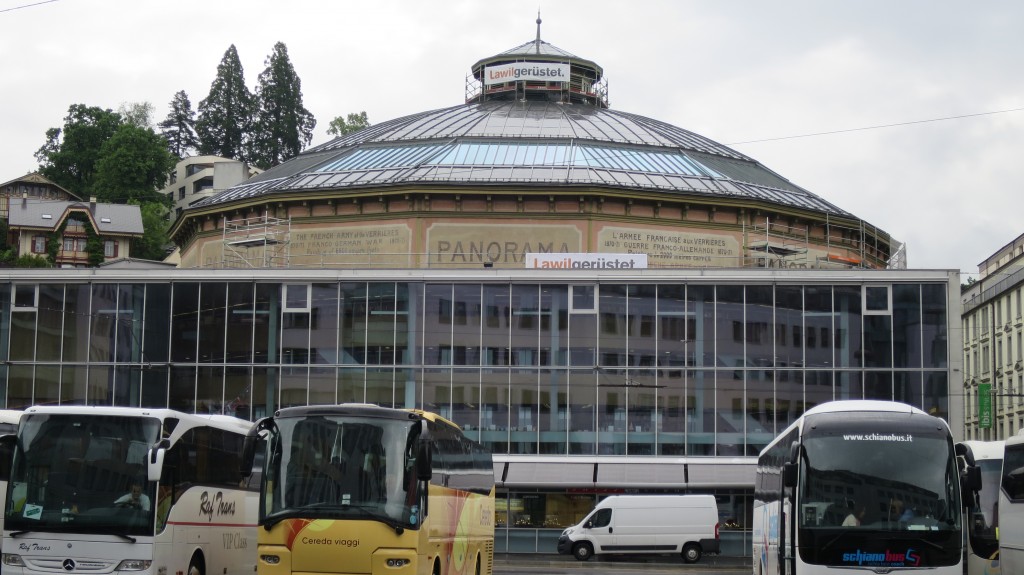 Edouard Castries with a team of artists completed this panorama back in 1880. Housed first in Geneva, it was transferred to Lucerne back in 1889. In 1997 the people of Lucerne by eighty percent vote past legislation to build the current center for 27 million francs. The panorama reminds me of the Cyclorama at Gettysburg National park.