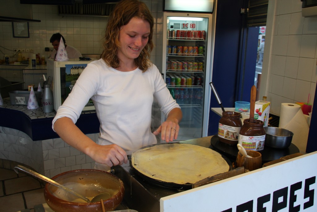 In Port-En-Bessin we saw the huge tide difference much like it is in the Bay of Fundy in Canada. We could not help ourselves to some crepes being made near the harbor side.
