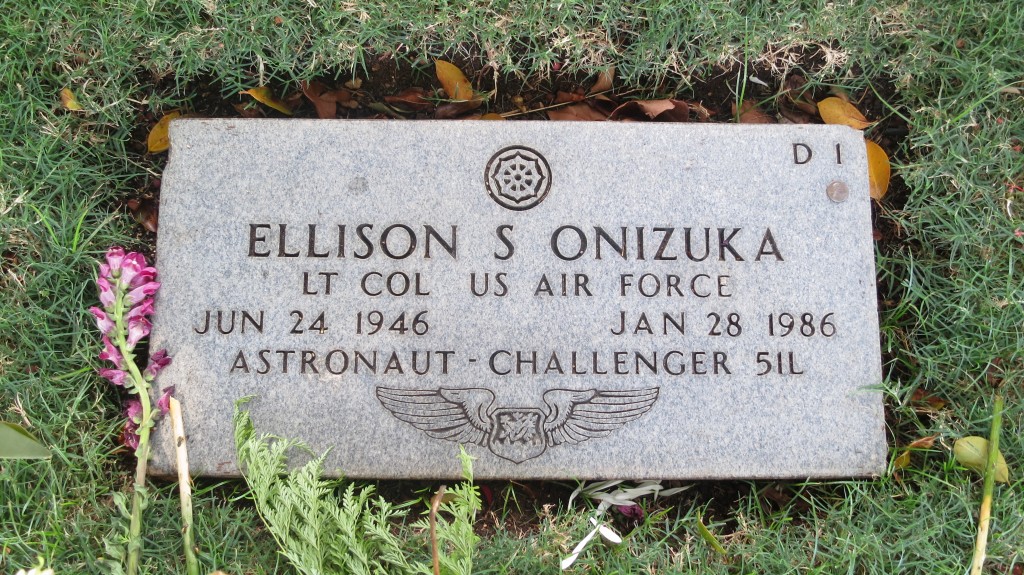 The tour busses will stop at the graves of Ernie Pyle and the Challenger Astronaut, Ellison Onizuki. As you may remember, Ellison was the first Hawaiian to go up in space, but died with six others (Christa McAuliffe, the first teacher into space being one of them) on that fateful day of January 28, 1986.