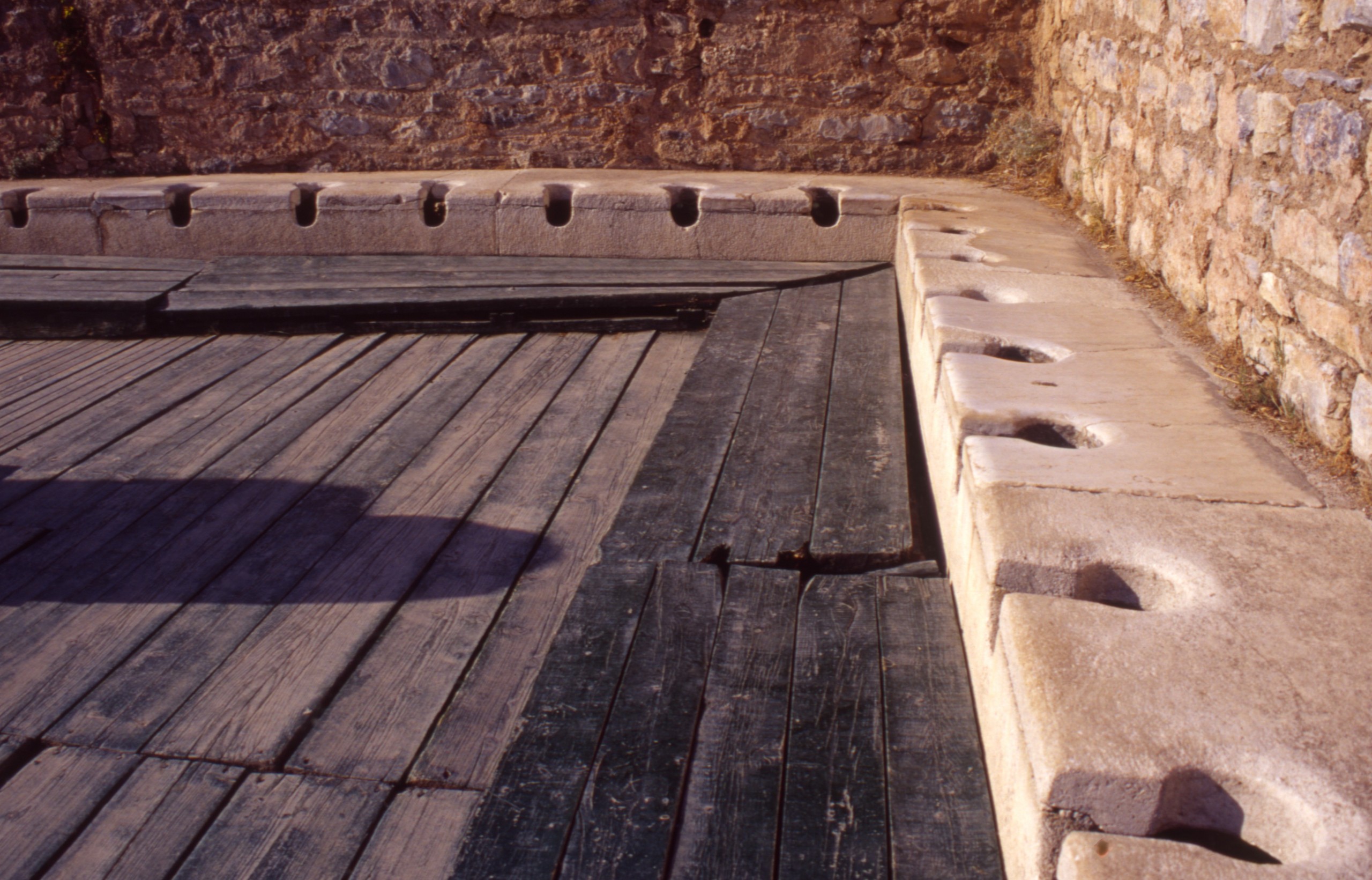 We saw the bathroom system used in Ephesus, Turkey in our 2001 visit.