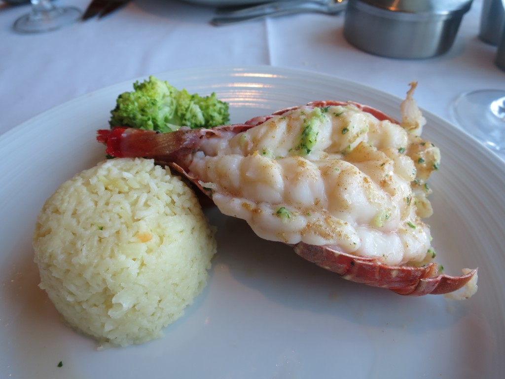 The best meal was the lobster and Prime Rib night—although served on the same night.