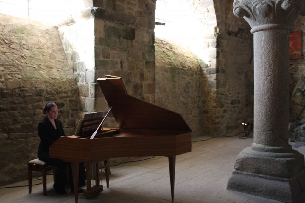 What was nice staying on the Mont was having the opportunity of visiting the main museum and Cathedral at dusk. I remember hearing music in the halls and indeed there was a woman playing on a piano.