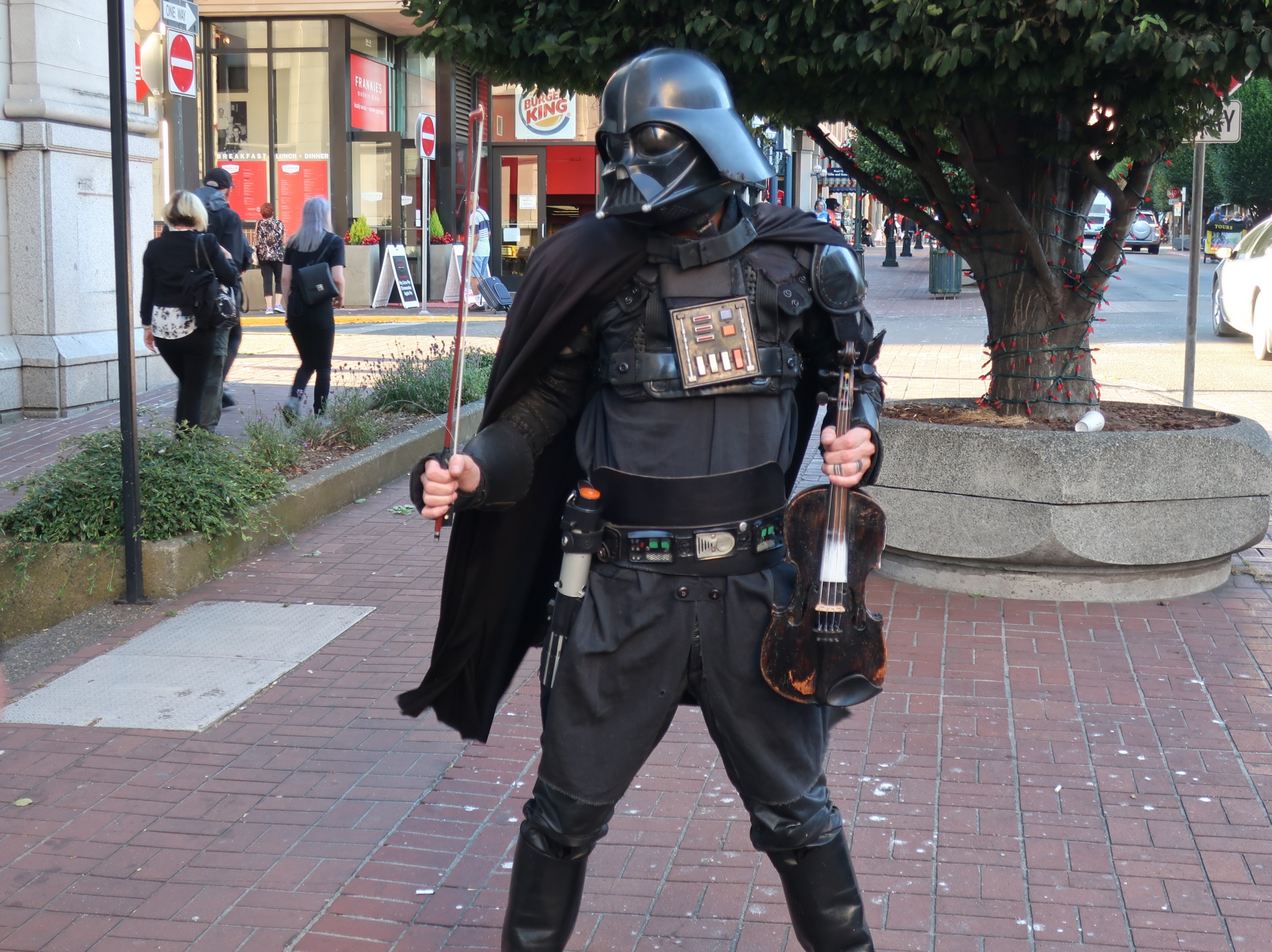 You have no idea what you may see walking downtown.  In 2010 and 2017, I saw this same guy wearing a “Darth Vader” outfit.