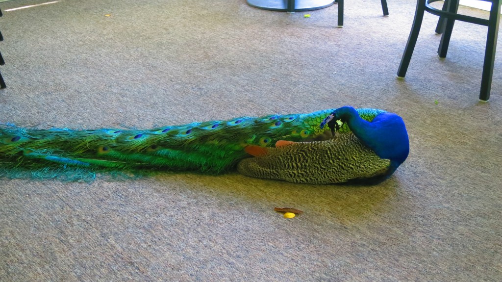 At the beginning is a delightful complex with a café, restaurant and store. A pretty “peacock” hangs around “The Proud Peacock Restaurant.”